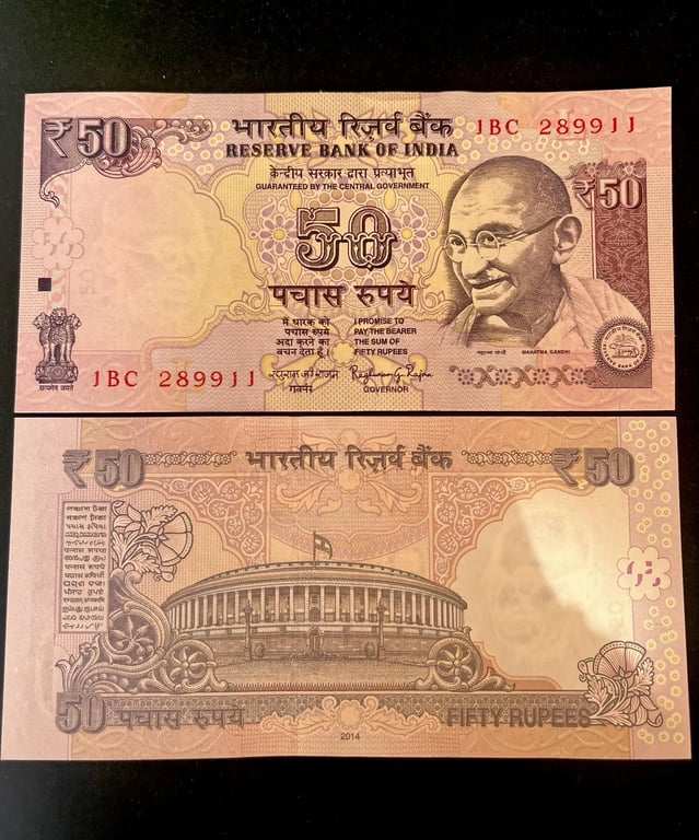 F 61 Rs 50 India Banknote Signature Series Signed by Raghuram Rajan Inset L 2014 issue
