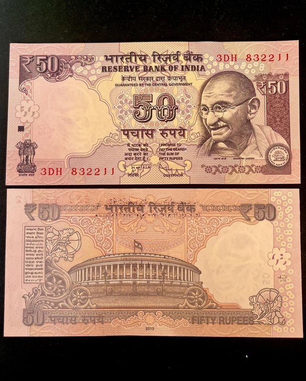 F - 56 Rs 50 India Banknote Signature series Signed by D.SUBARAO Inset PLAIN 2013 issue