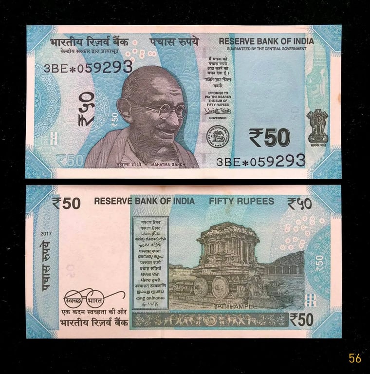 Fs 56 Rs 50 India Banknote Star Replacement Issue 3BE Inset Plain 2017 Limited Issue