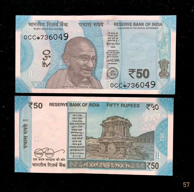 FS57 - Rs 50 India Banknote Star Replacement Issue 0CC INSET L 2017 Limited Issue