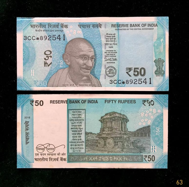Fs 63 Rs 50 India Banknote Star Replacement Issue 3CC Inset L 2018 Limited Issue