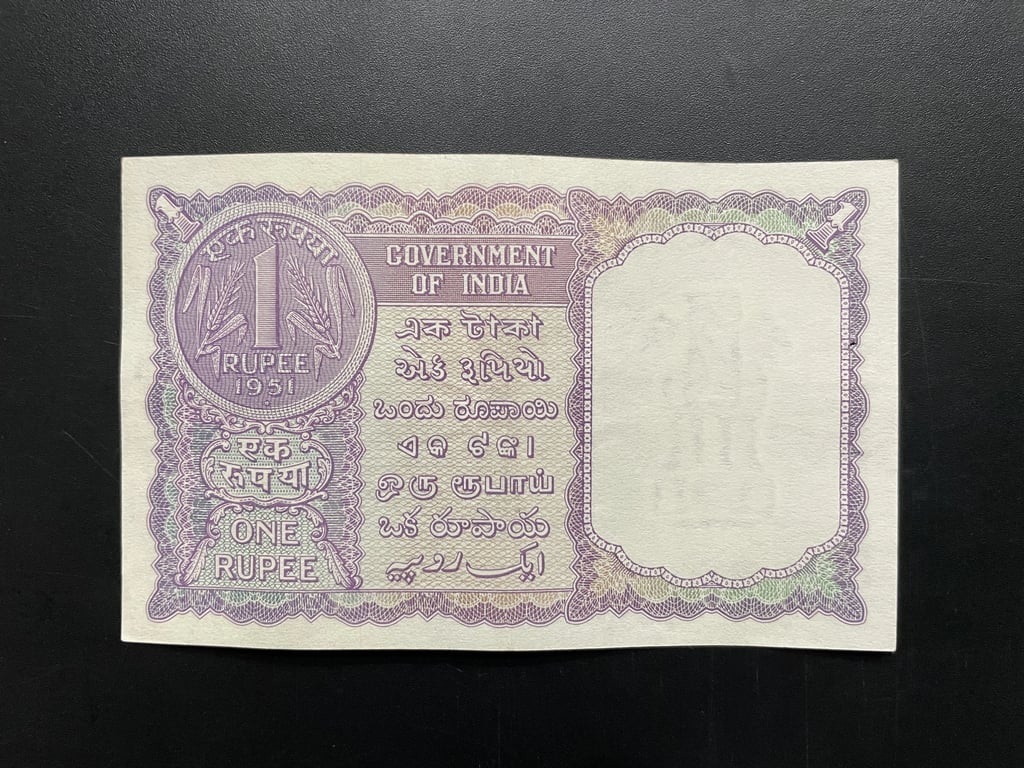India, 1951 Rupee 1 Banknote. Sign. H. M. Patel, Jumbled Ladder Serial 345678