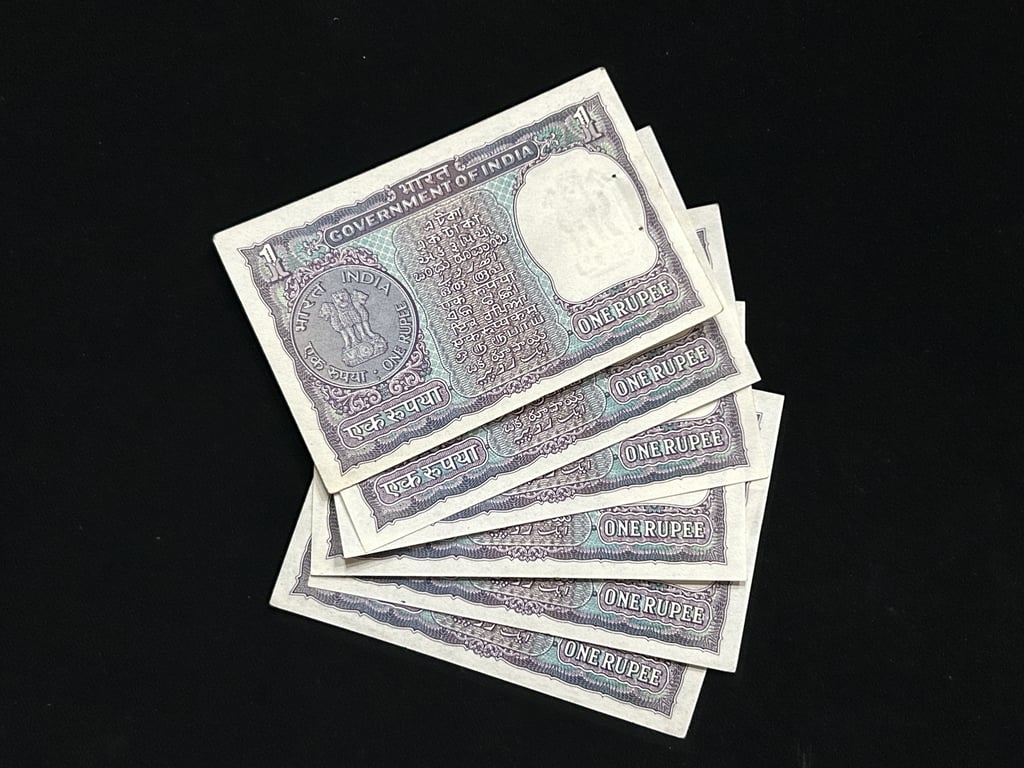 India, 1969 Rupee 1 x 6 Banknotes, Set Of Fancy Serial Number 555522-555599 (555555 & 555566 Missing), Gandhi Issue, Sign. I.G. Patel, UNC