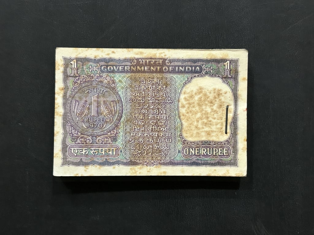 India, 1970 Rupee 1 Complete Serial Bundle of 100 Notes, Holy Fancy Serial Number Ending 687 (Reverse 786) & 666, , Sign. I.G. Patel Inset C