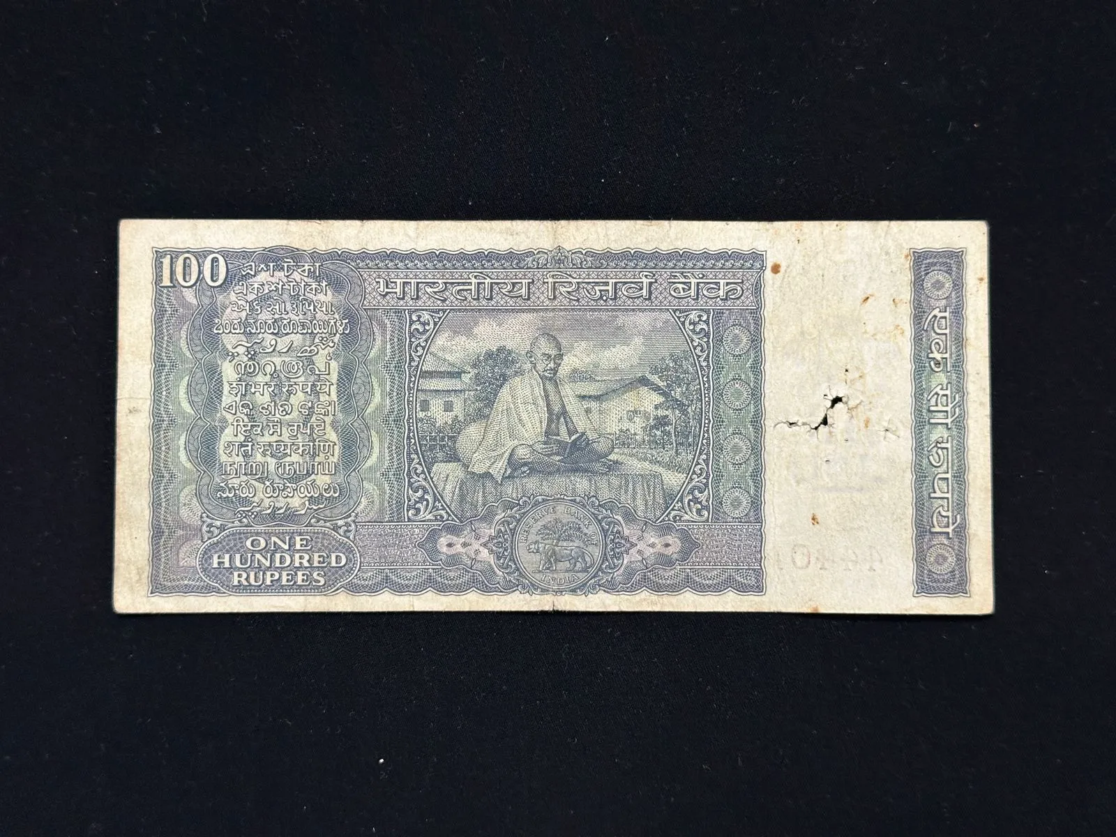 India, 1970 Rupees 100 Banknote, Gandhi Issue, Sign. B.N. Adarkar, (AB3 444014)