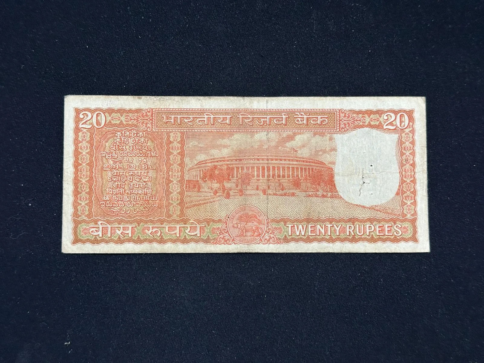 India, 1972 Rupees 20 Banknote, Fancy Mirror Serial Number 411-114, 3rd Issue, Sign. S. Jagannathan, RARE, (C87 411114)