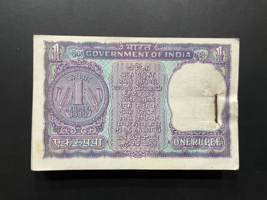 India, 1980 Rupee 1 Complete Serial Bundle of 100 Notes