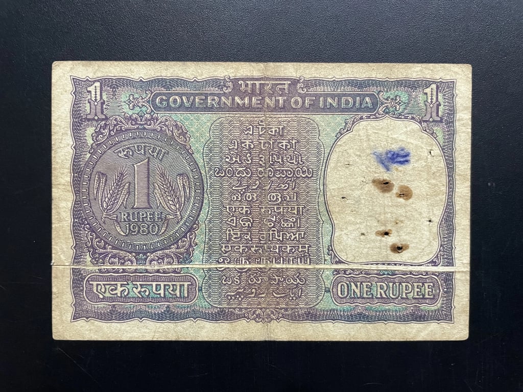 Indian 1980 Rupee 1 Paper Creasing Error Banknote