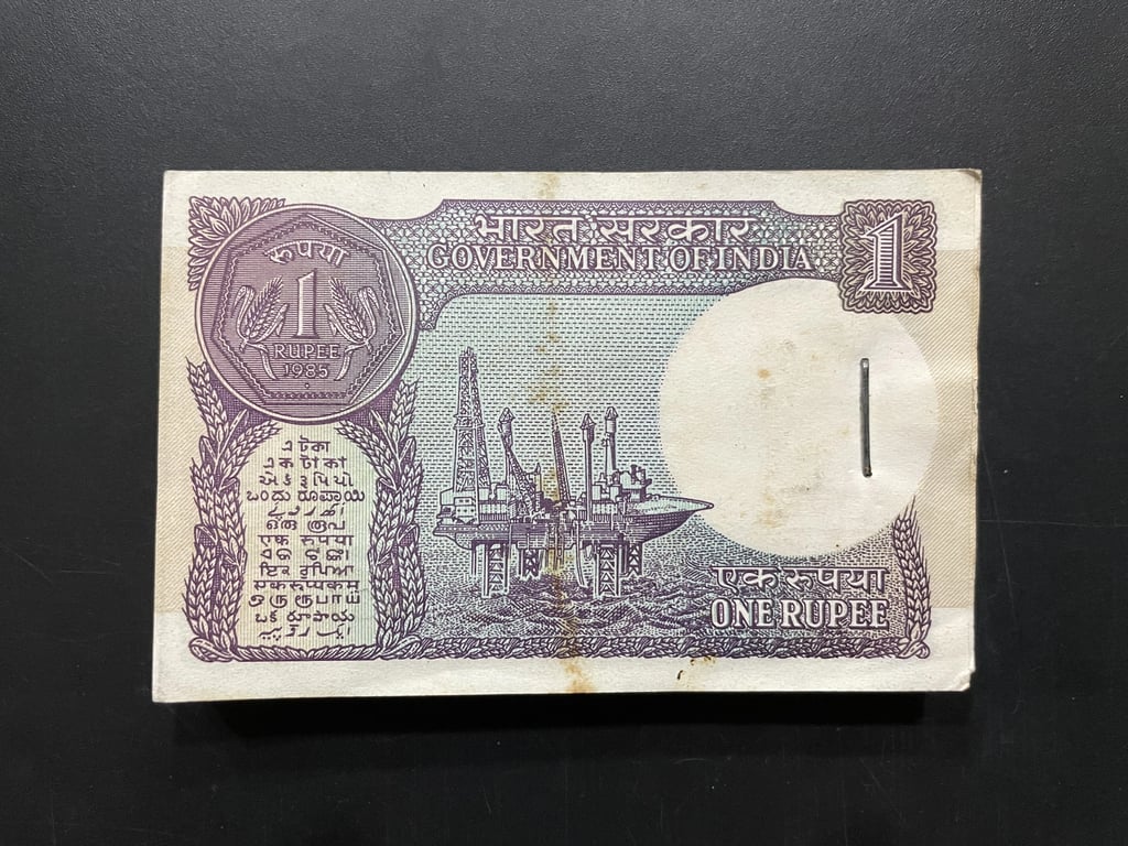 India, 1985 Rupee 1 Complete Serial Bundle of 100 Notes