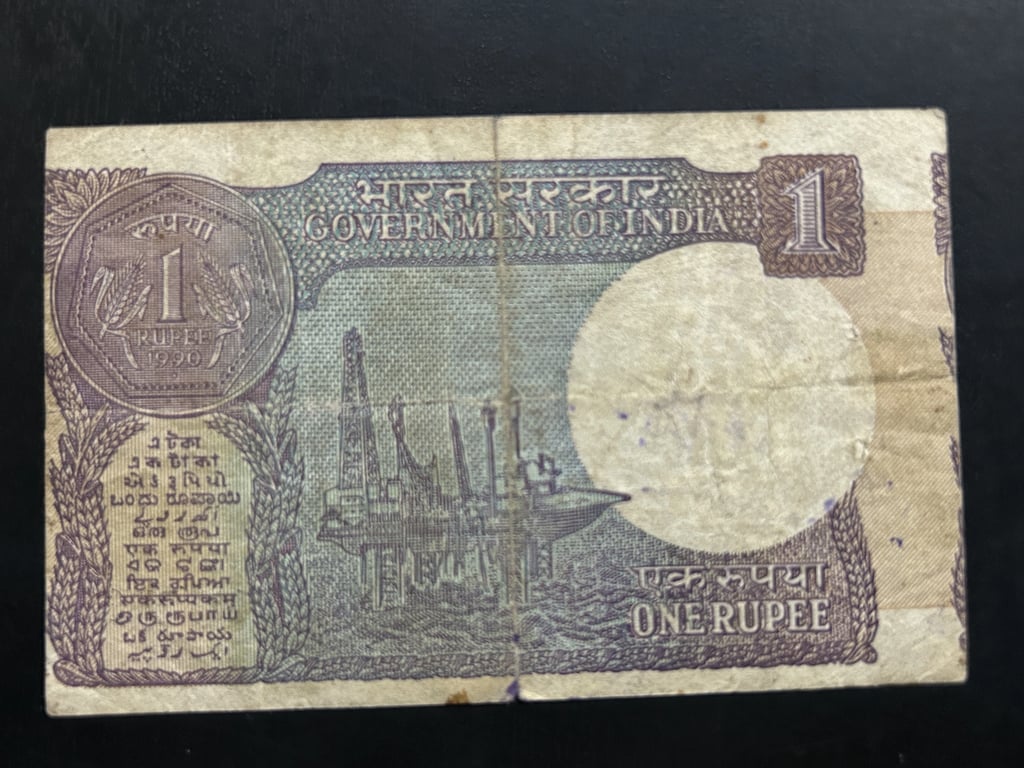India, 1990 Rupee 1 Banknote, Paper Cutting Error, Sign. Bimal Jalan, Used Condition