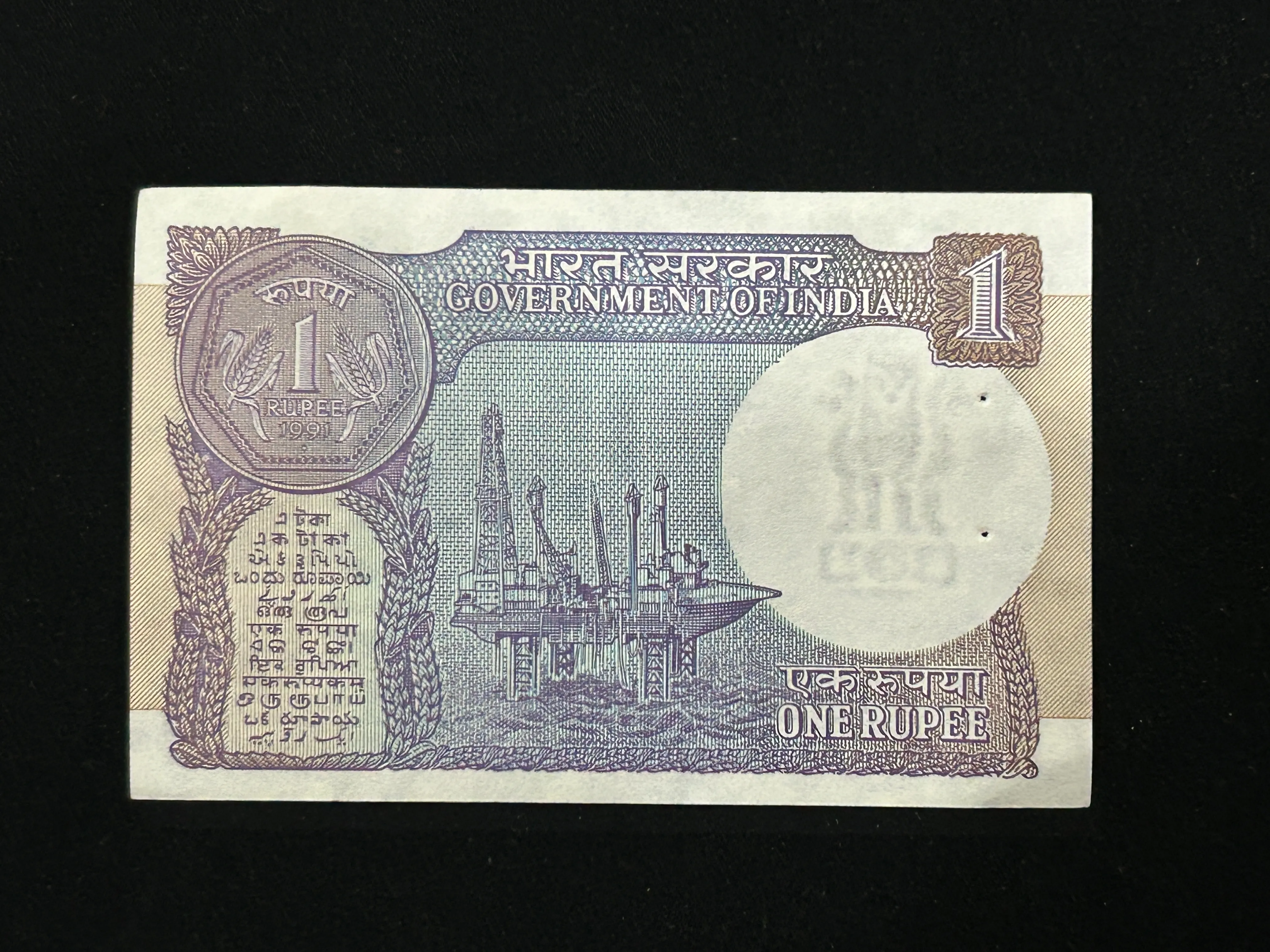 India, 1991 Rupee 1 Banknote, Sign. S.B. Shukla, Inset B, UNC, (18H 370768)