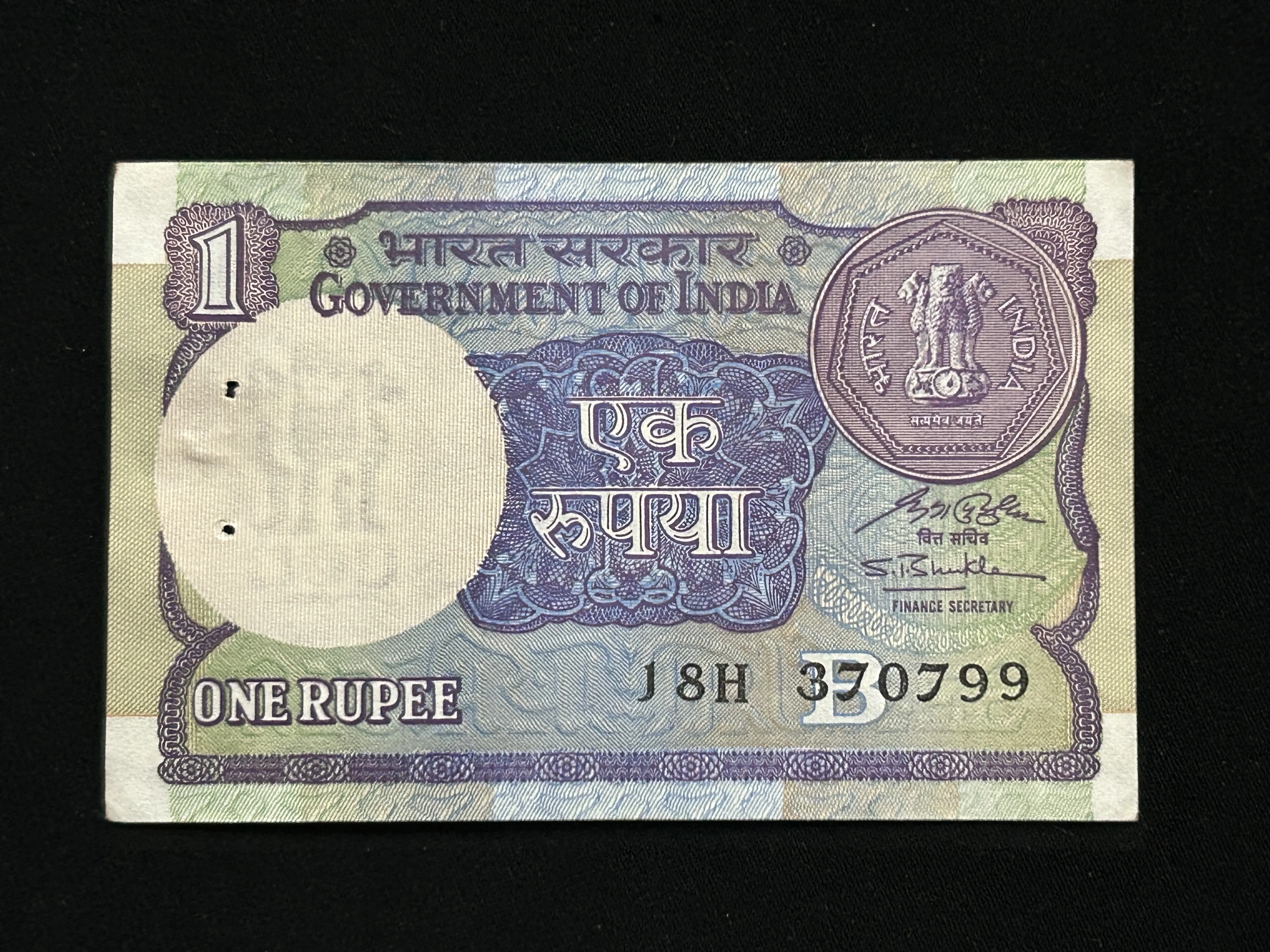 India, 1991 Rupee 1 Banknote, Sign. S.B. Shukla, Inset B, UNC, (18H 370799).