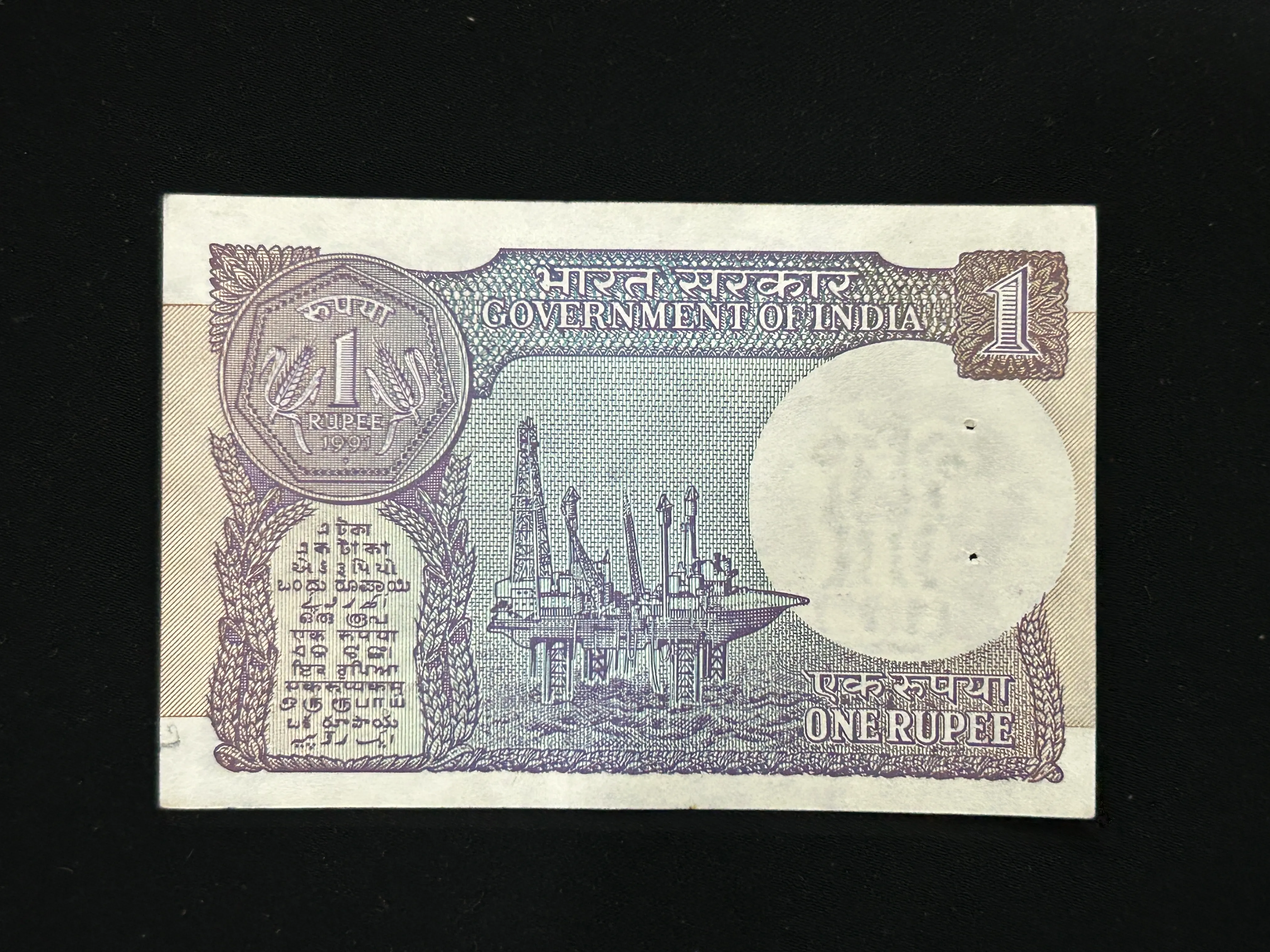 India, 1991 Rupee 1 Banknote, Sign. Montek Singh Ahluwalia, Inset B, UNC, (05K 707794)