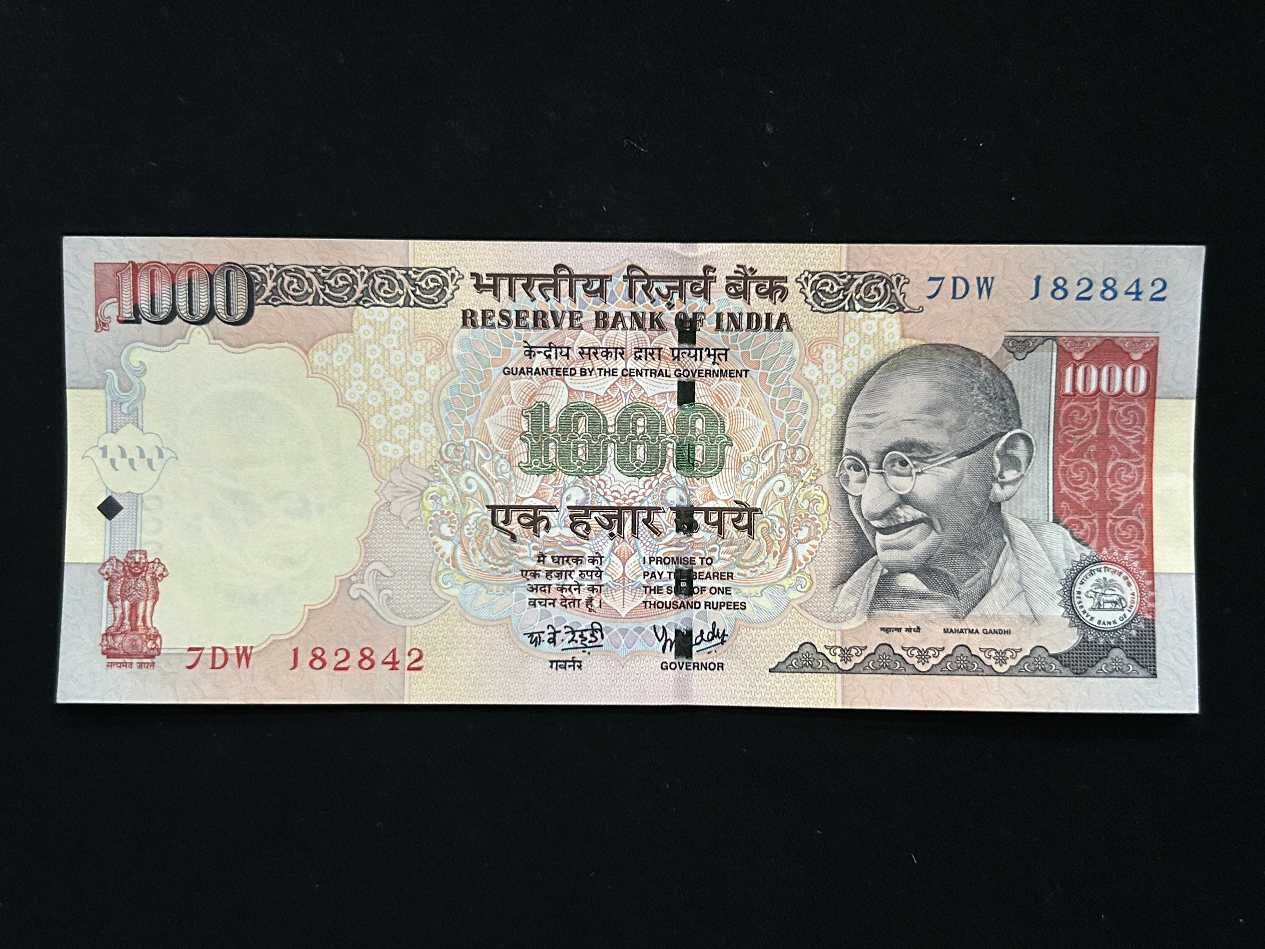 India, 2008 Rupees 1000 Banknote, Sign. Y.V. Reddy, Inset Plain, UNC, (7DW 182842)