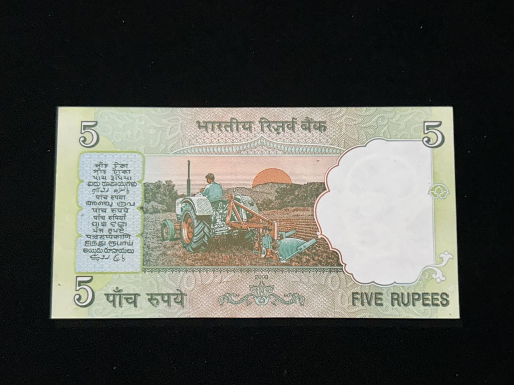 India, 2009 Rupees 5 Banknote, Fancy Doubling Serial Number 009-009, Sign. D. Subbarao, Inset E, UNC