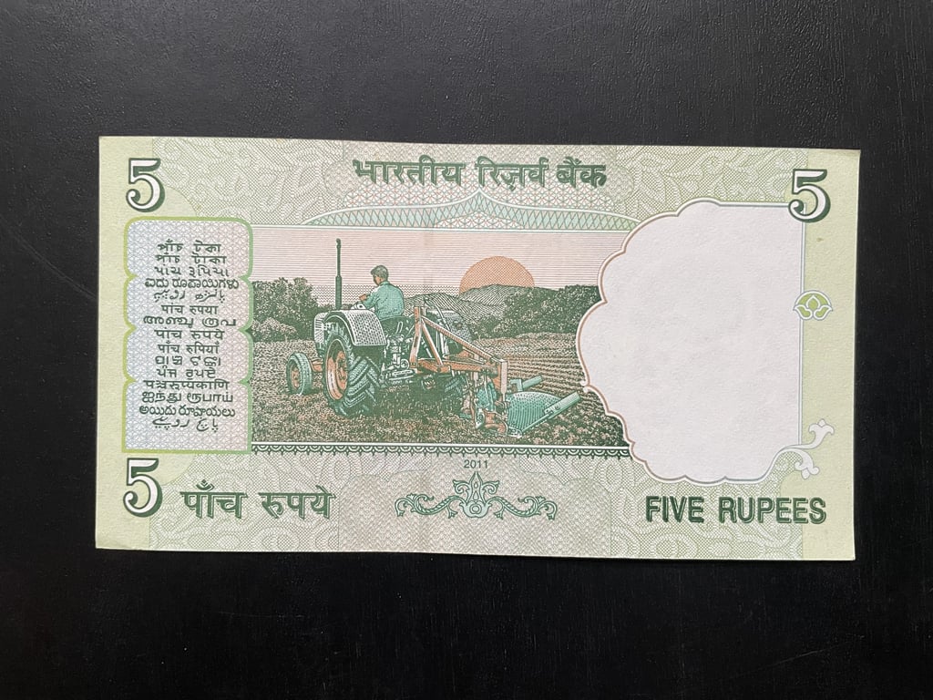 Indian 2011 Rupees 5 Lower Serial Banknote 000021