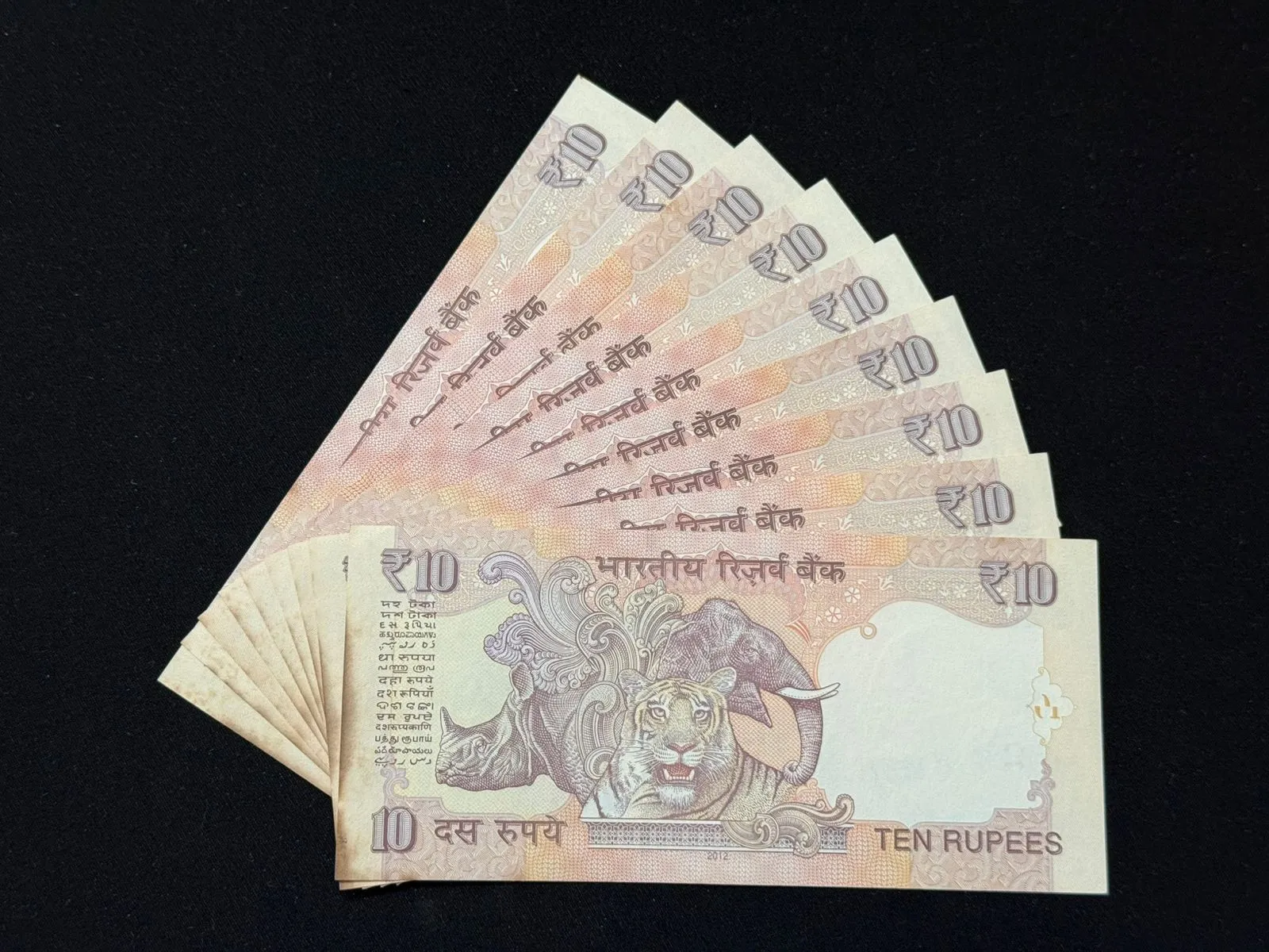 India, 2012 Rupees 10 x 9 Banknotes, Set of Holy Fancy Serial Number 111214 - 999214 (Ending RAM), Sign. D. Subbarao, Inset Plain, UNC, (59R 111214)