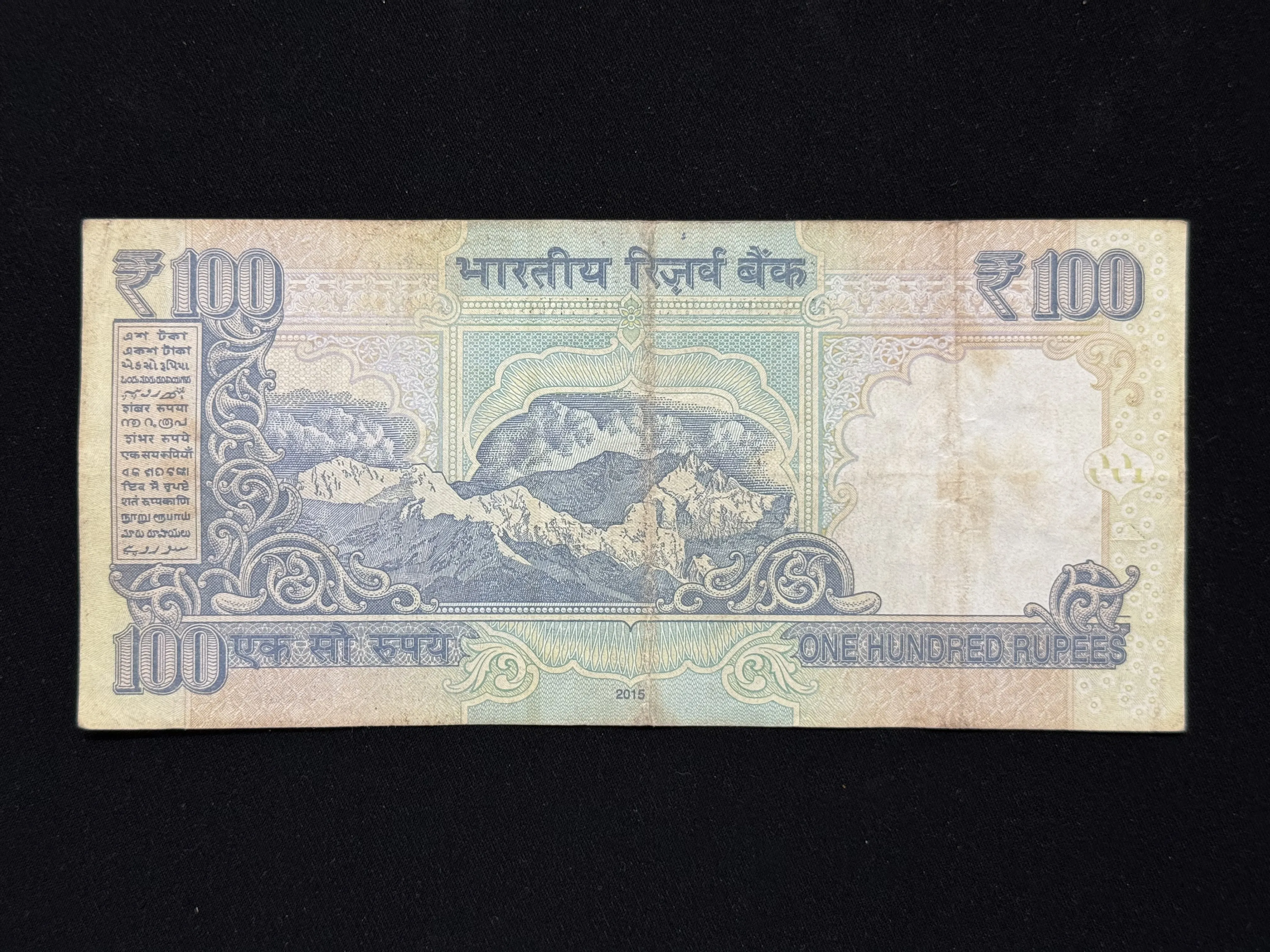 India, 2015 Rupees 100 Banknote, Super Lower Fancy Serial Number 0 - 000008, Sign. Raghuram G. Rajan, Inset Plain, (0MQ 000008)