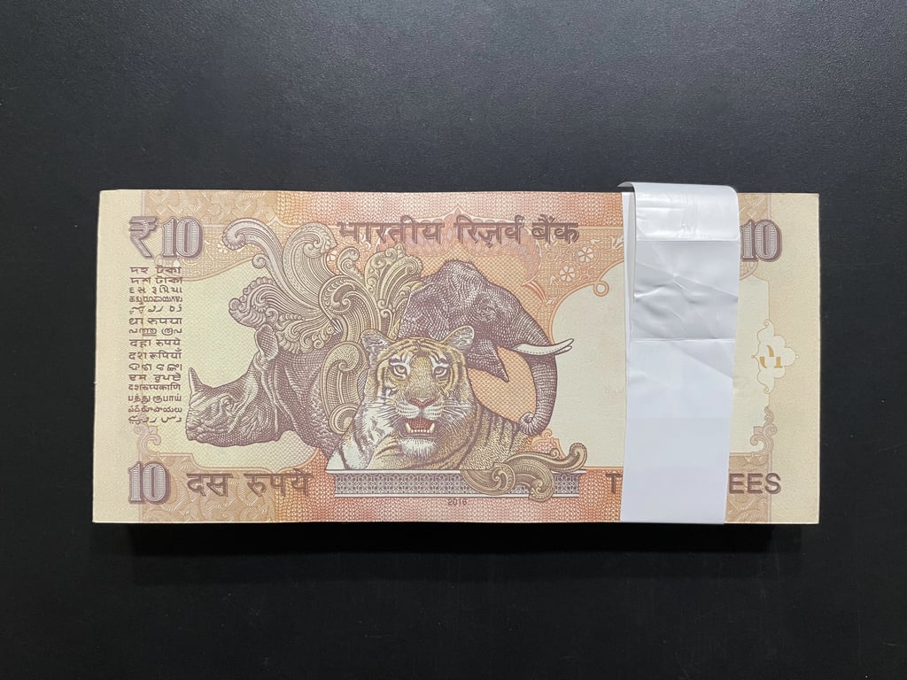 Indian 2016 Rupees 10 Complete Serial Bundle of 100 Notes