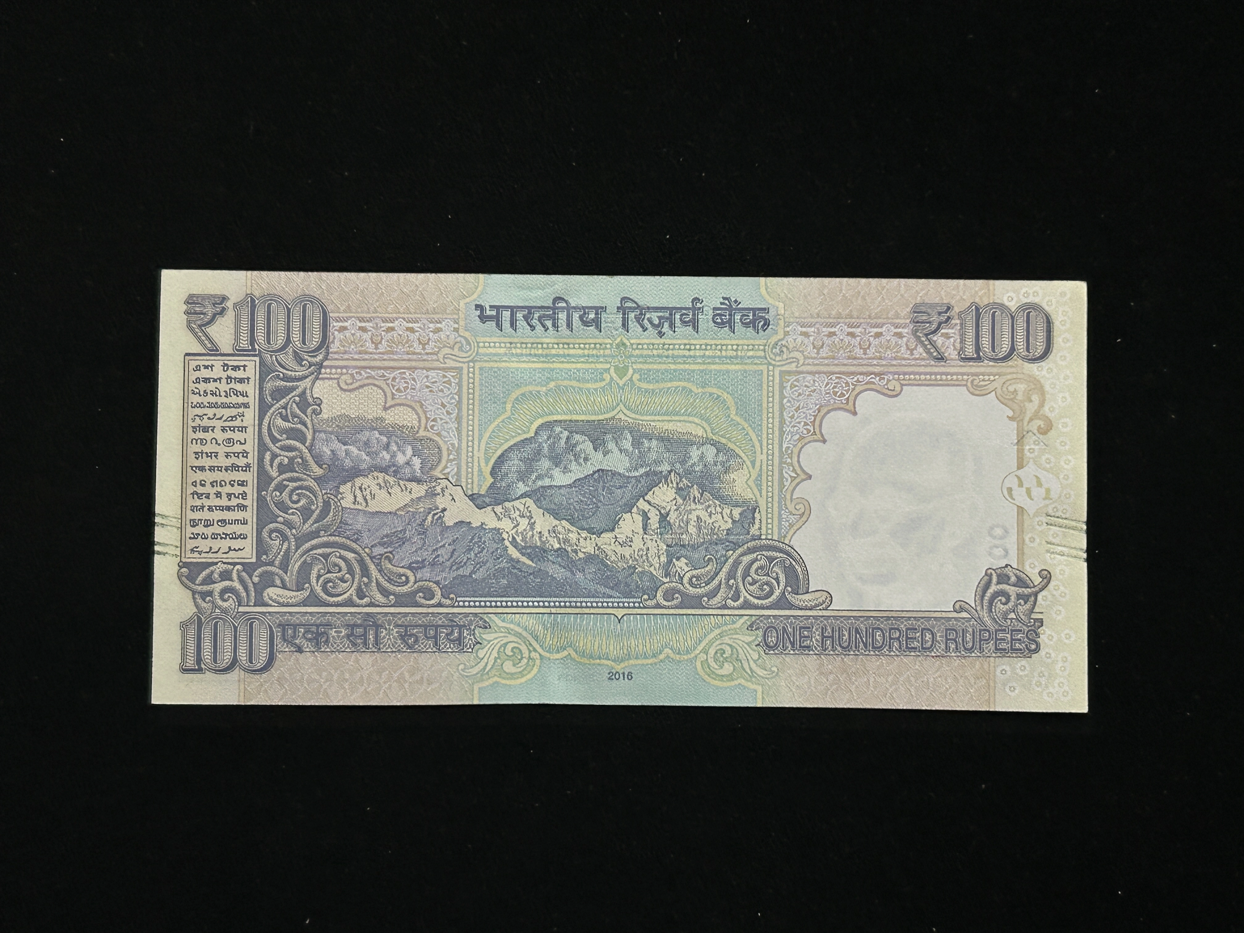 India, 2016 Rupees 100 Banknote, Lower Fancy Serial Number 000016, Sign. Raghuram G. Rajan, Inset E, UNC