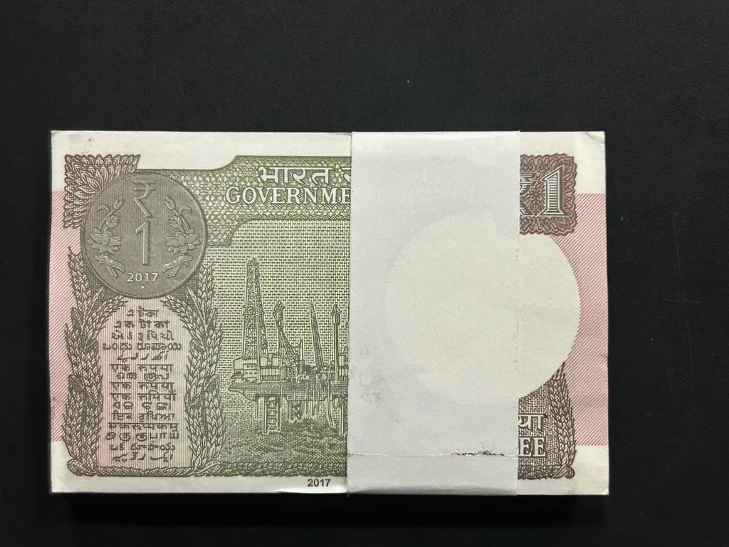 India, 2017 Rupee 1 Complete Serial Bundle of 100 Notes, Fancy Serial Number Ending, 916 & 999, Sign. Shaktikanta Das, Inset L, UNC