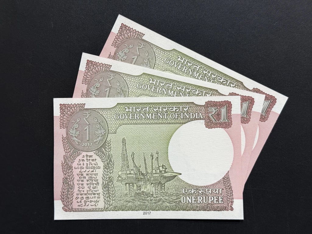 India, 2017 Rupee 1 x 3 Consecutive Star Serial Number Banknotes, Sign. Shaktikanta Das, Prefix 04F, UNC