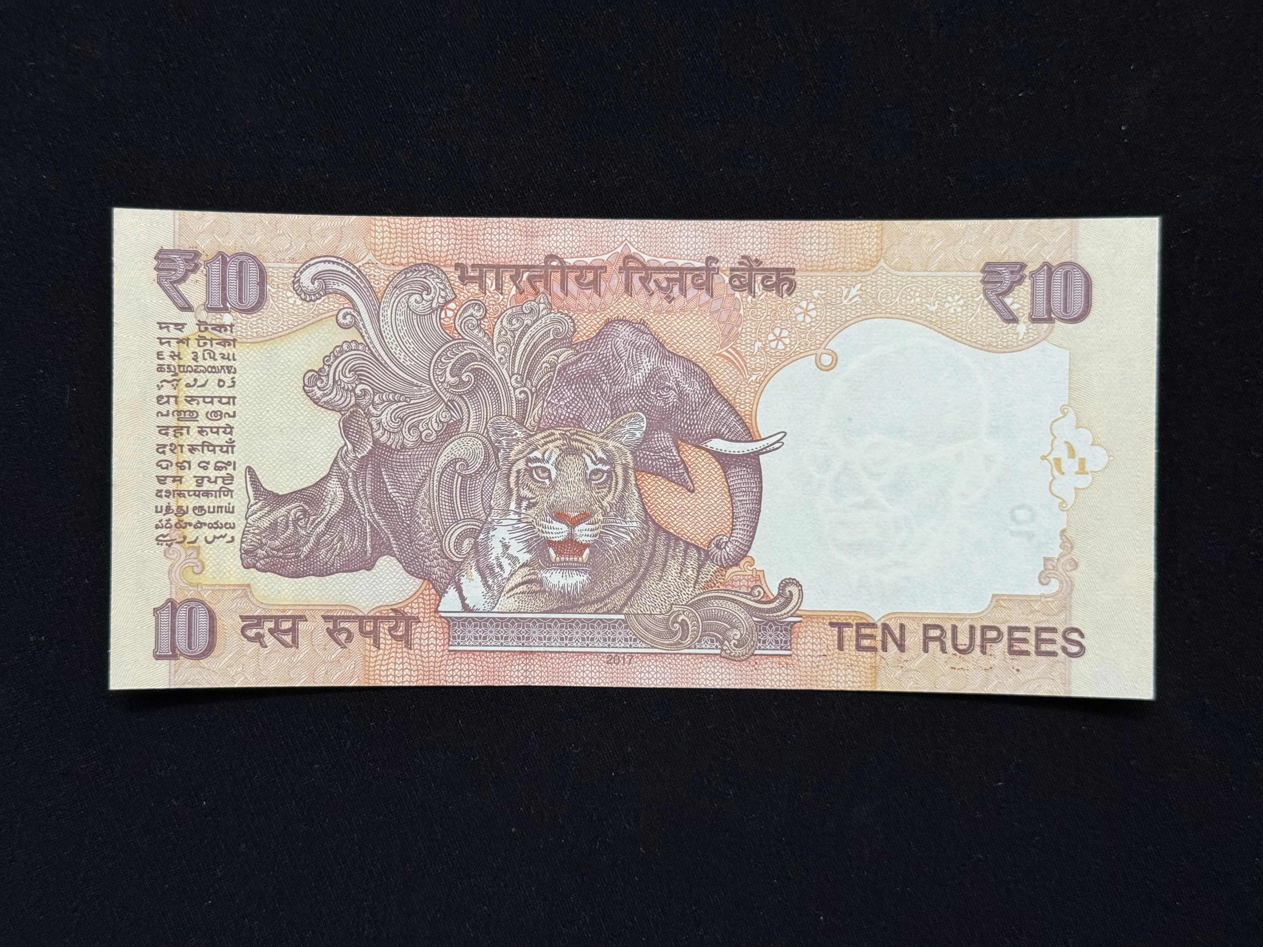 India, 2017 Rupees 10 Banknote, Fancy Doubling Serial Number 420-420, Sign. Urjit R. Patel, Inset L, UNC,(95B 420420)