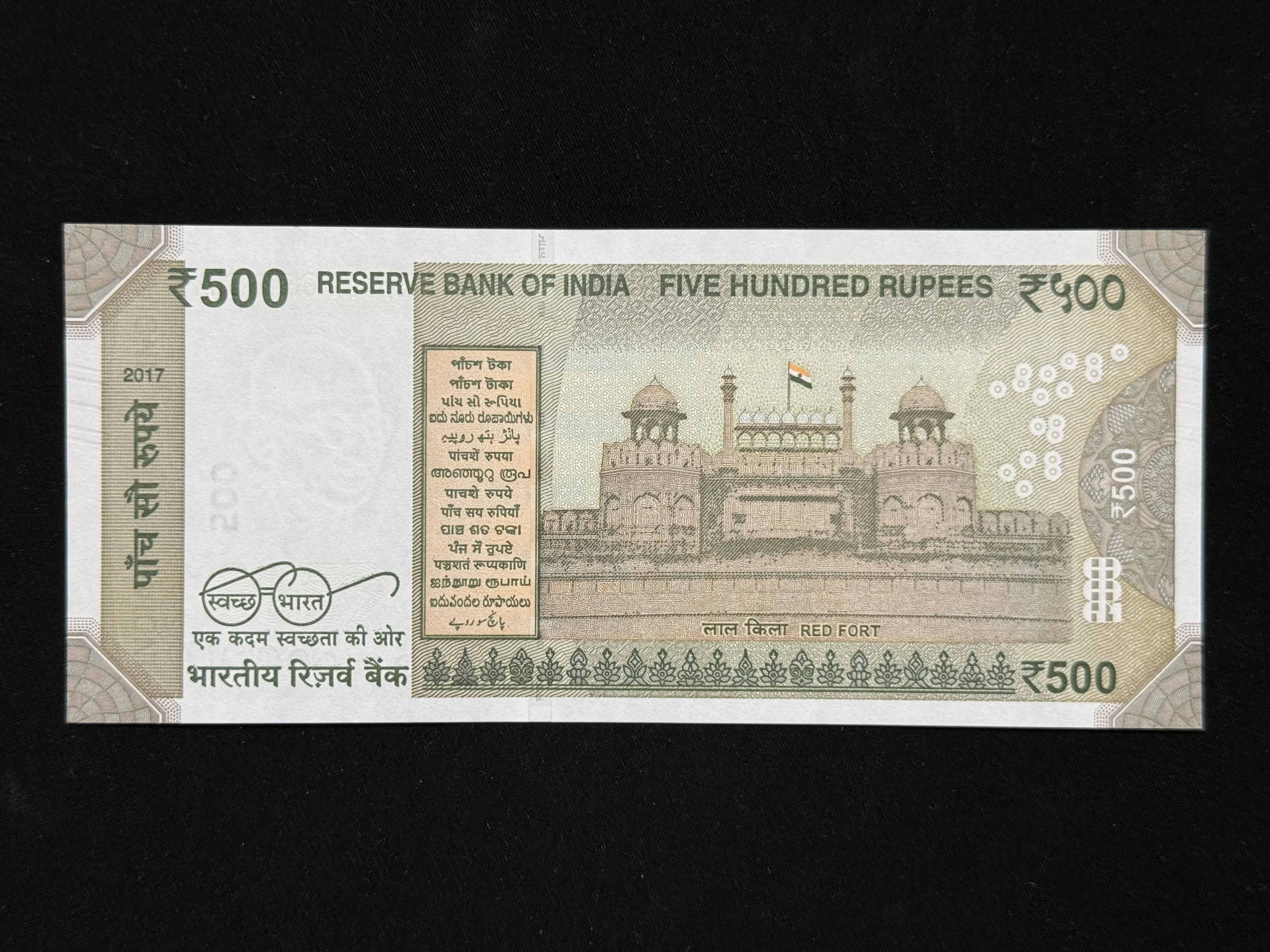 India, 2017 Rupees 500 Banknote, Fancy Serial Number 100000, Sign. Urjit R. Patel, Inset Plain, UNC, (1TQ 400000)