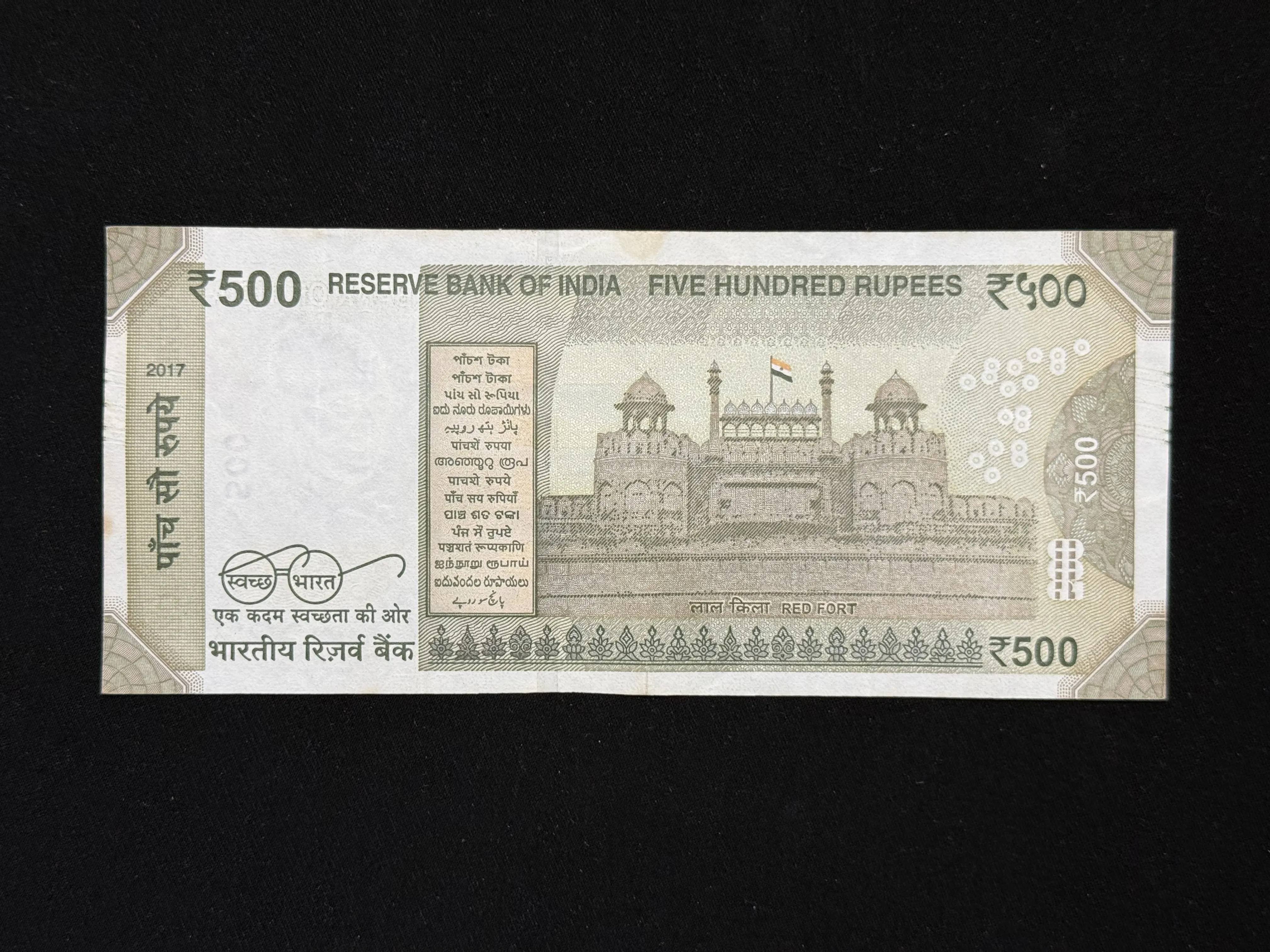 India, 2017 Rupees 500 Banknote, Solid Fancy Serial Number 222222, Sign. Urjit R. Patel, Inset L, (6HS 222222)