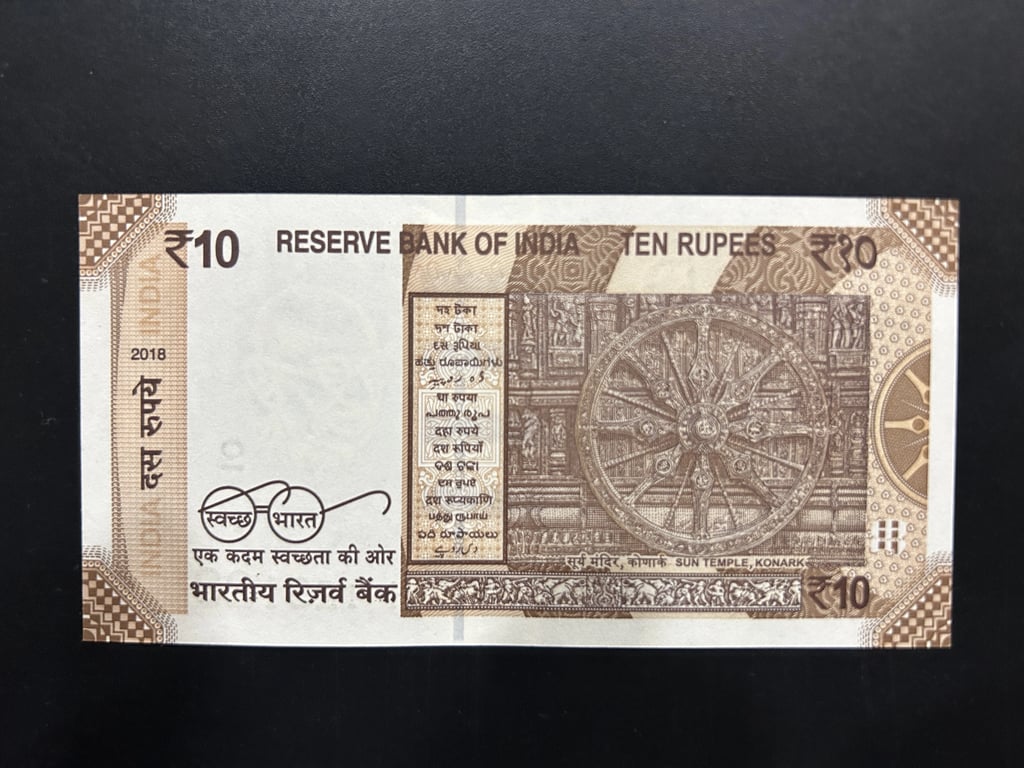 India, 2018 Rupees 10 Banknote, Fancy Doubling Serial Number 123-123, Sign. Urjit R. Patel, Inset E, UNC