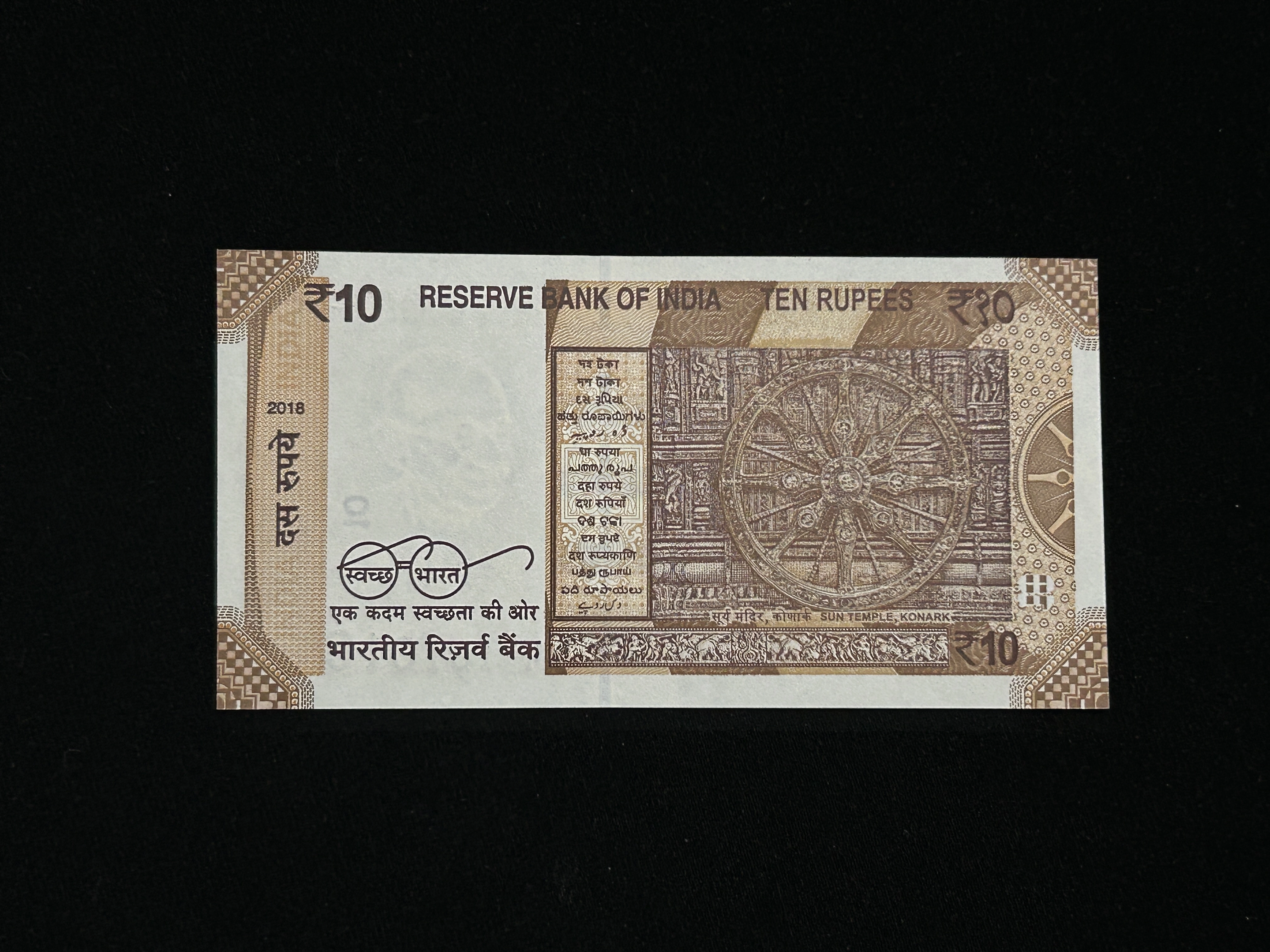 India, 2018 Rupees 10 Banknote, Fancy Tripling Serial Number 10-10-10, Sign. Urjit R. Patel, Inset A, UNC