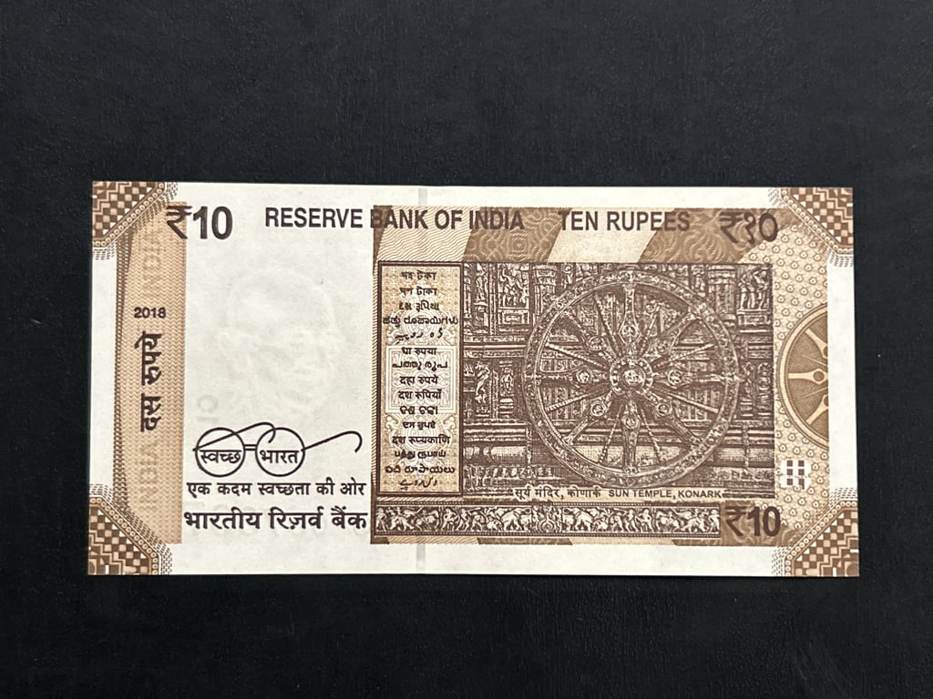 India, 2018 Rupees 10 Banknote, Fancy Double Serial Number 007-007 (James Bond), Sign. Urjit R. Patel, Inset A, UNC