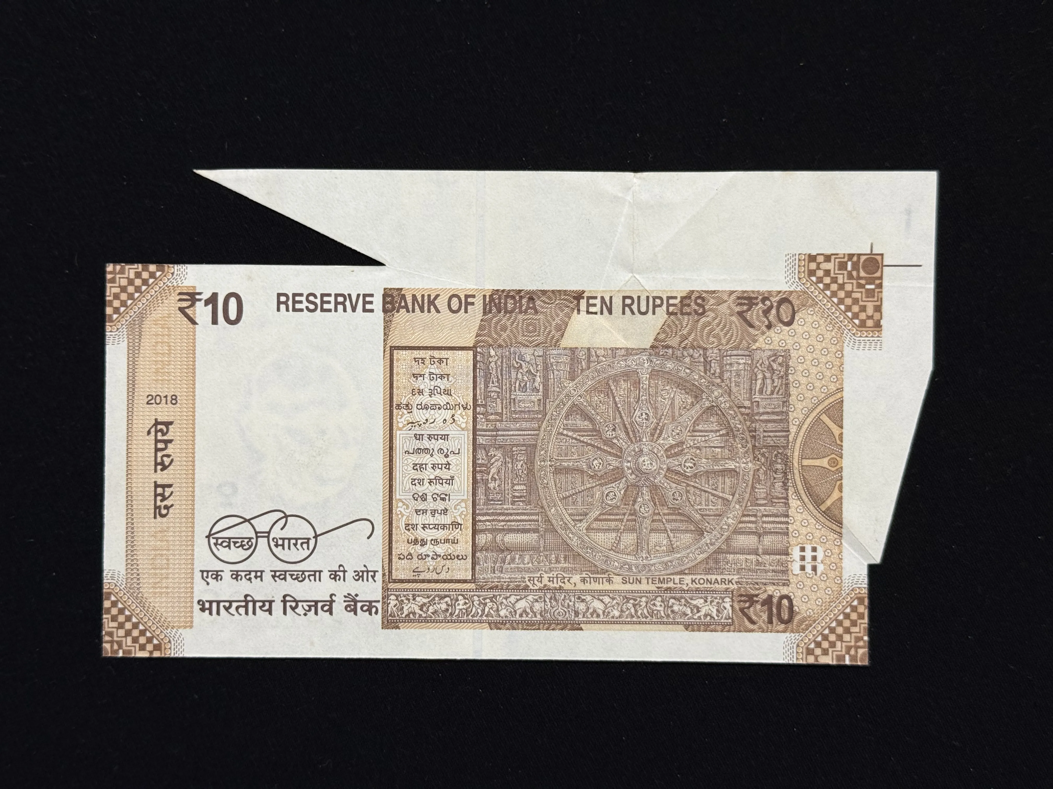 India, 2018 Rupees 10 Banknote, Sheet Fold Cutting Error, Sign. Urjit Patel, Inset S, UNC, RARE, (78K 957100)