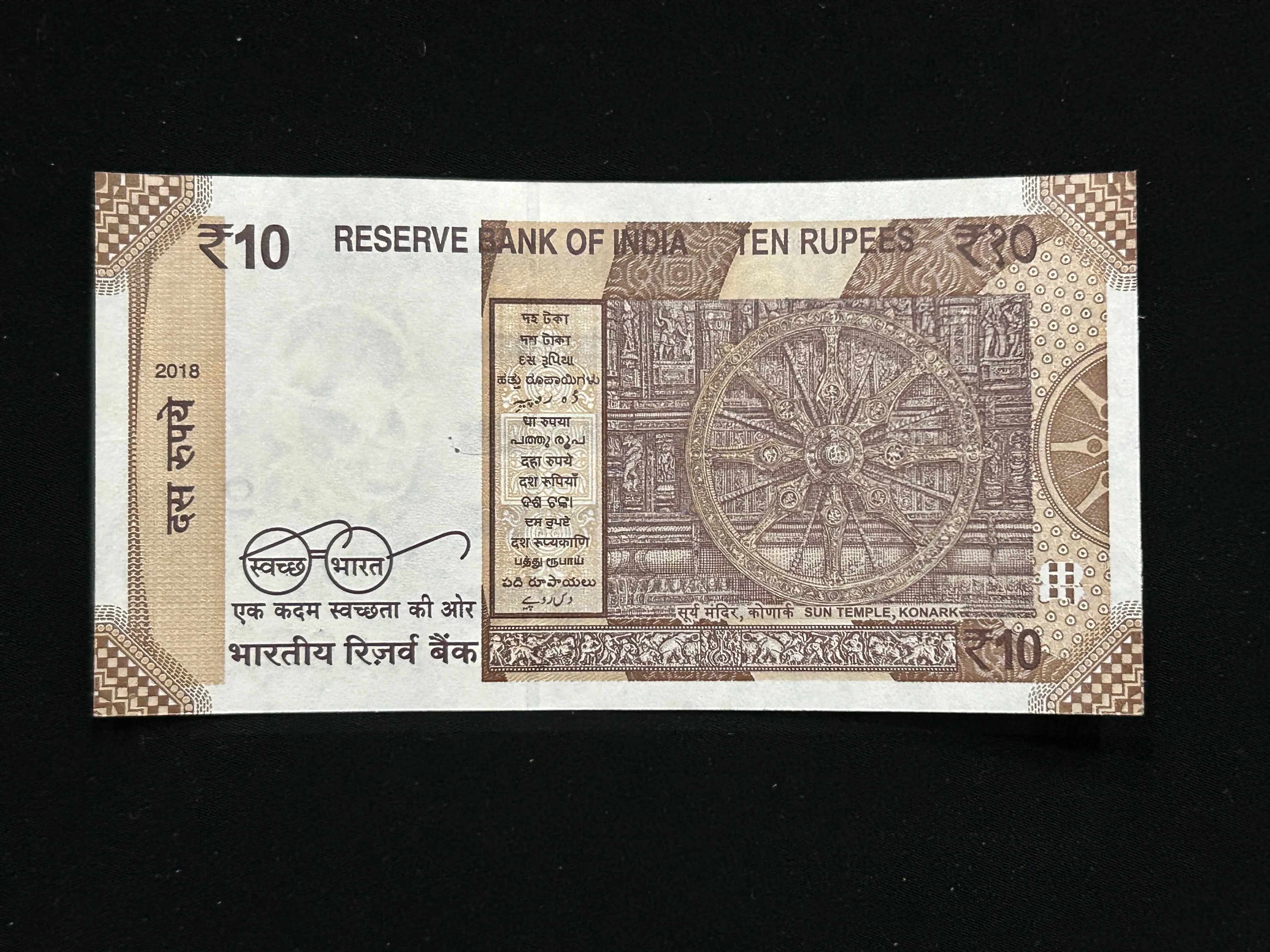 India, 2018 Rupees 10 Banknote, Fancy Doubling Serial Number 108801 (Reverse 108), Sign. Urjit R. Patel, Inset R, UNC, (65L 108801)