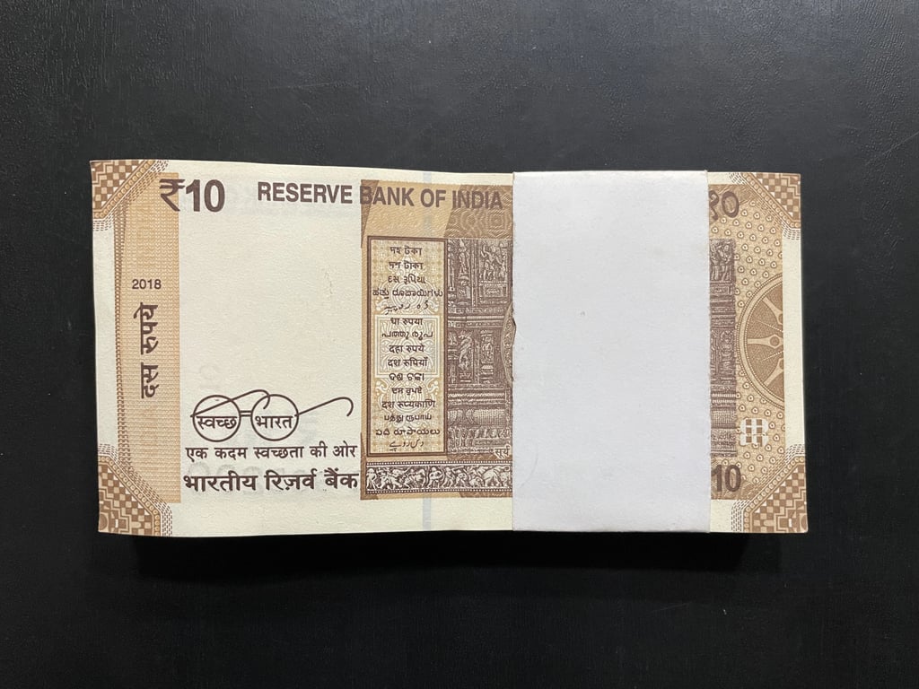Indian 2018 Rupees 10 Complete Serial Bundle of 100 Notes