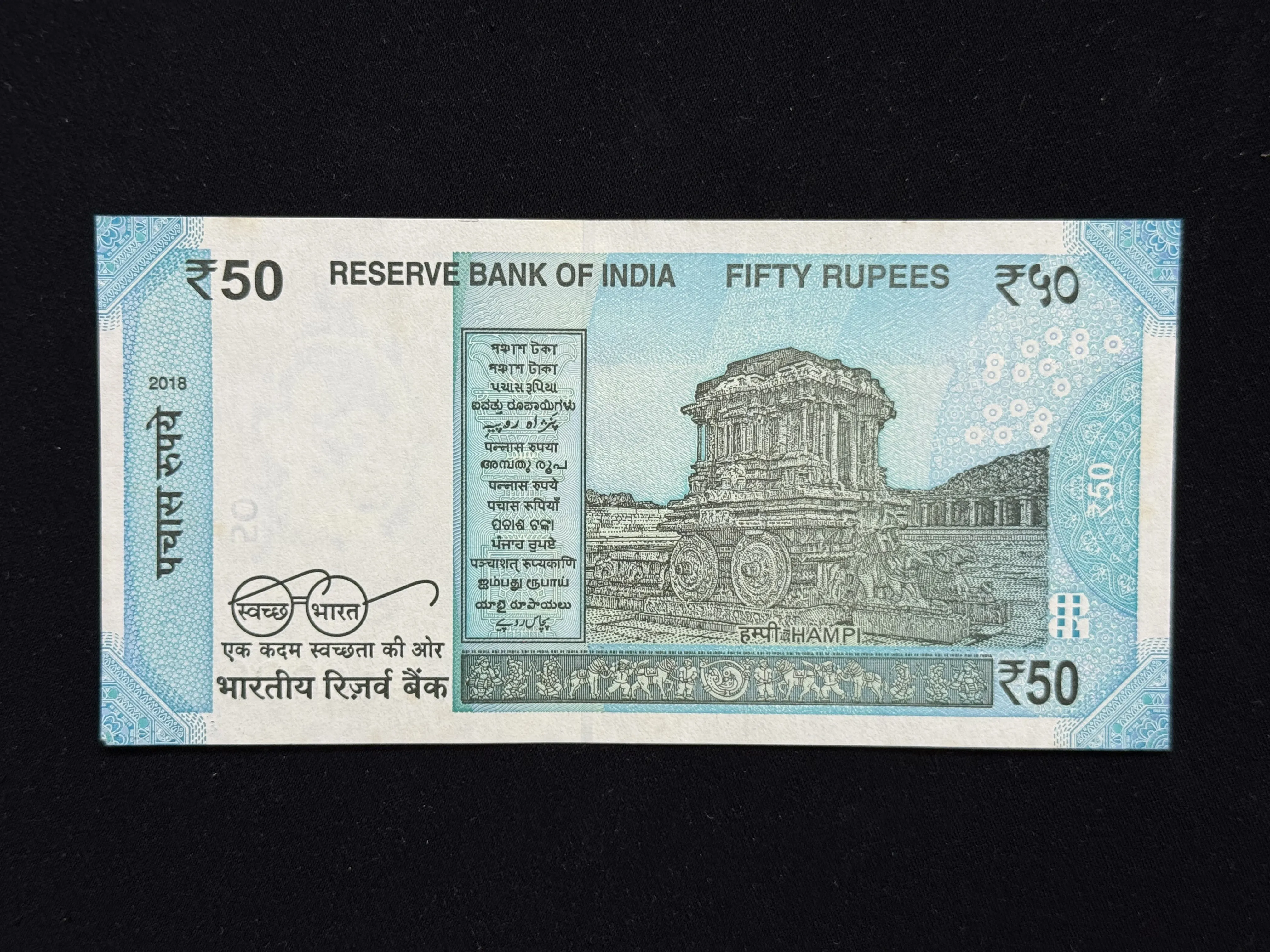 India, 2018 Rupees 50 Banknote, Fancy Serial Number 900000, Sign. Urjit R. Patel, Inset Plain, UNC, (0DM 900000)