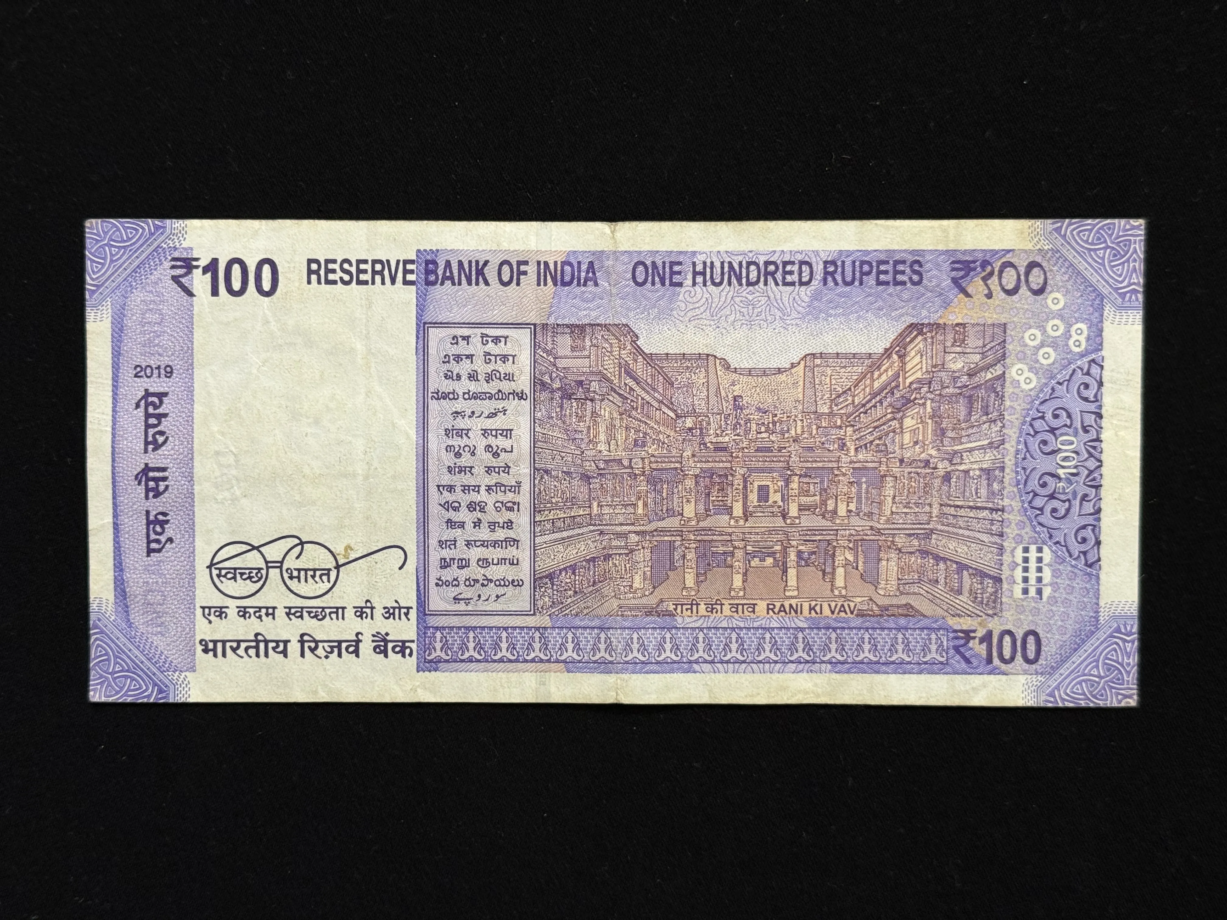 India, 2019 Rupees 100 Banknote, Fancy Serial Number 100000, Sign. Shaktikanta Das, Inset Plain, (7BH 100000)