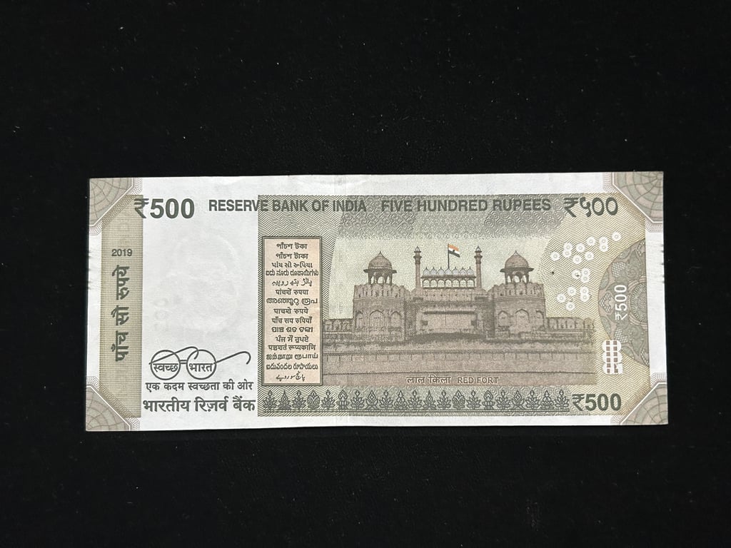 India, 2019 Rupees 500 Banknote, Ink Smudge Error, Sign. Shaktikanta Das, Inset L, UNC