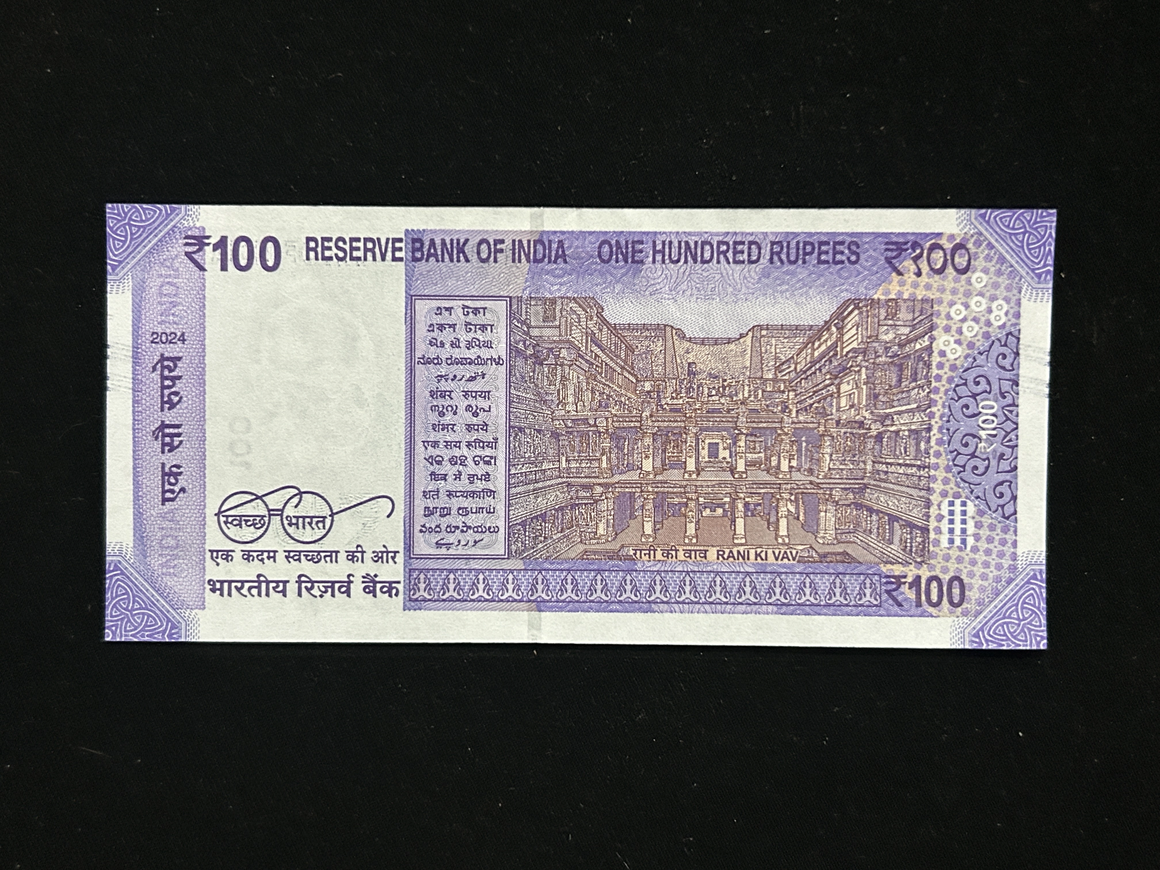 India, 2024 Rupees 100 Banknote, Solid Fancy Serial Number 777777, Sign. Shaktikanta Das, Inset M, UNC