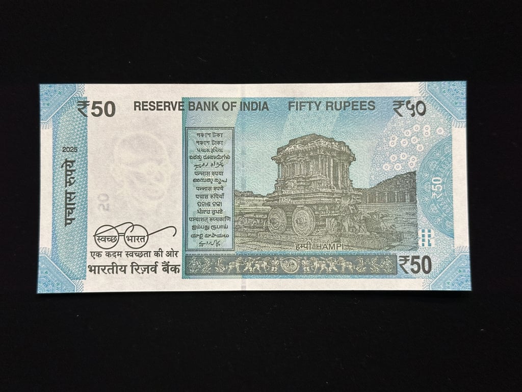 India, 2025 Rupees 50 Banknote, Solid Fancy Serial Number 777777, Sign. Sanjay Malhotra, Inset L, UNC