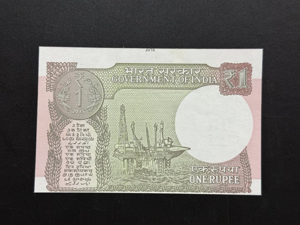 India, Rupee 1 Banknote, Paper Cutting Error, Sign. Rajiv Mehrishi, UNC