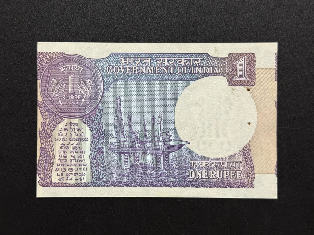 India, Rupee 1 Banknote, Paper Cutting Error, Sign. S. P. Shukla