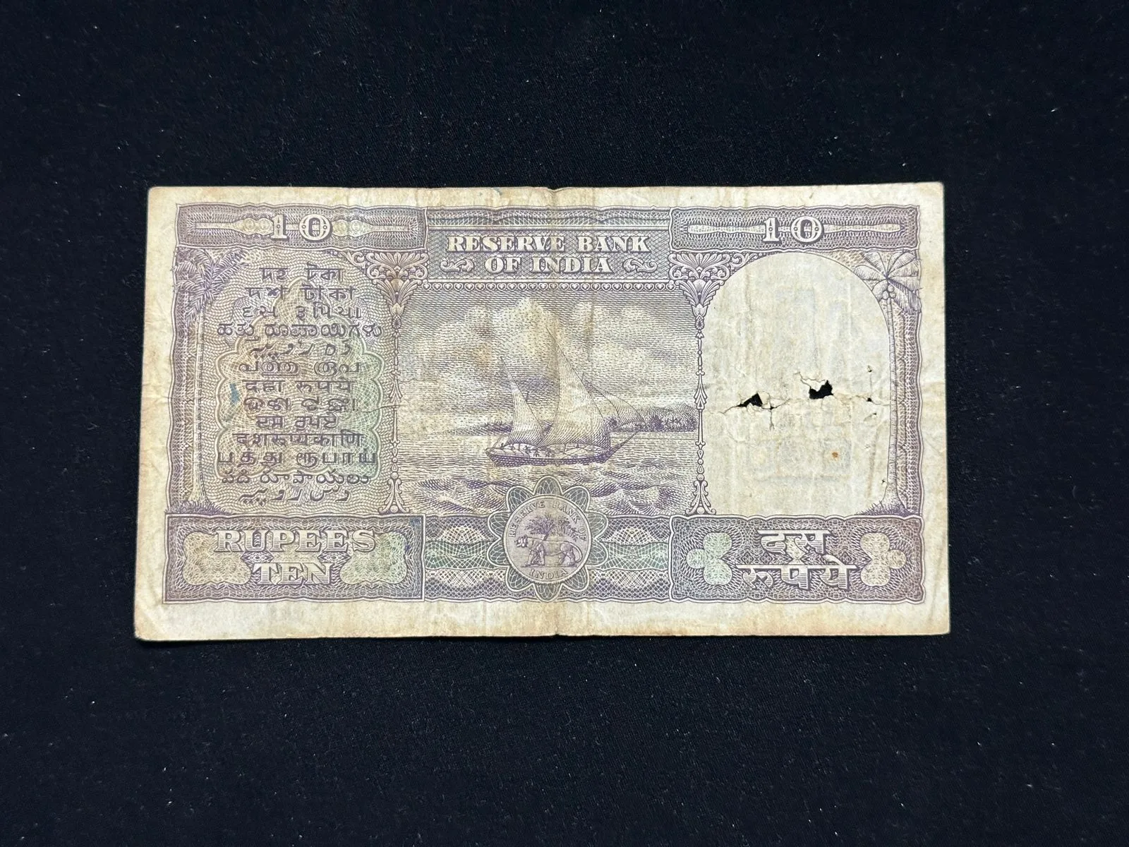 India, Rupees 10 Banknote, Fafda Issue, Holy Fancy Serial Number Middle 786, Sign. P. C. Bhattacharya, Inset B, Used Condition, (B44 297863)