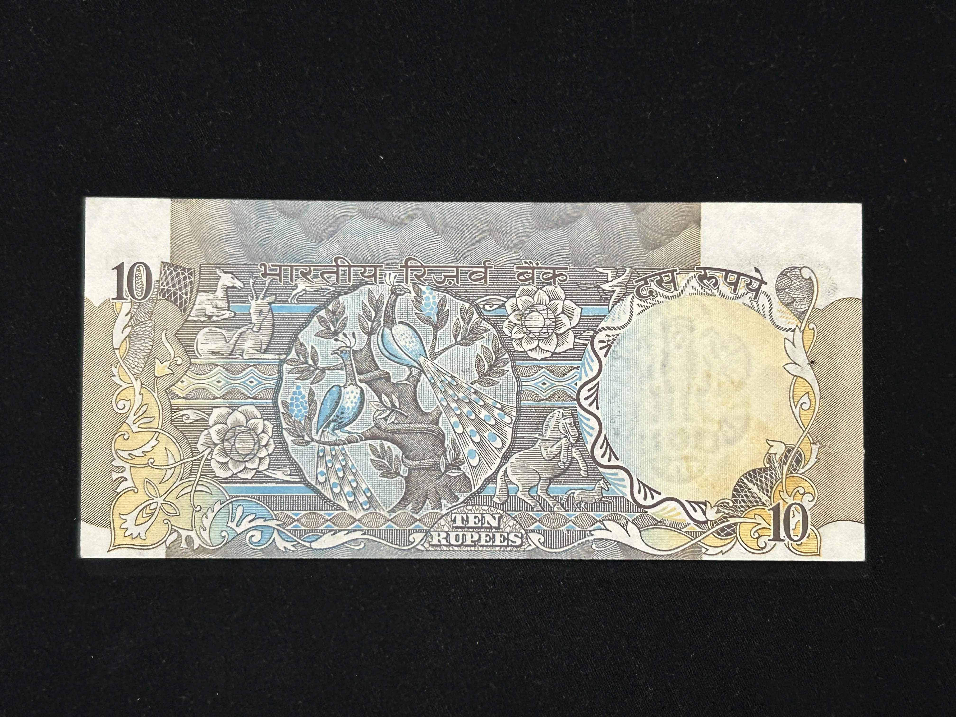 India, Rupees 10 Banknote, Paper Cutting Error, Peacock Issue, Sign. R. N. Malhotra, Inset C, RARE & SCARE, UNC, (49L 317250)