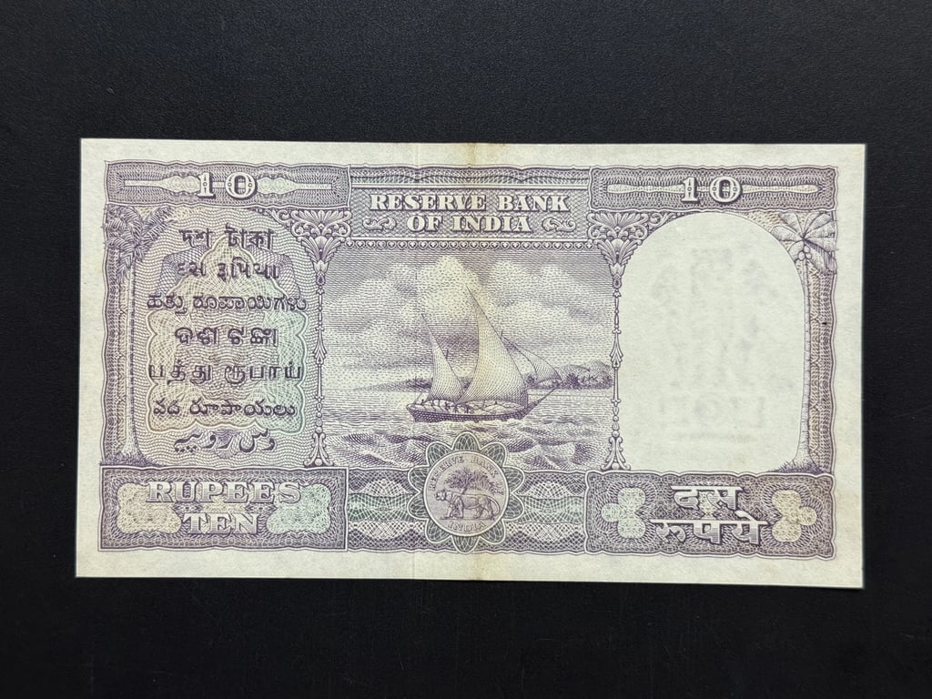 India, Rupees 10 Banknote, Reverse Holy Fancy Serial Number Ending 687 (786), Sign. B. Rama Rau