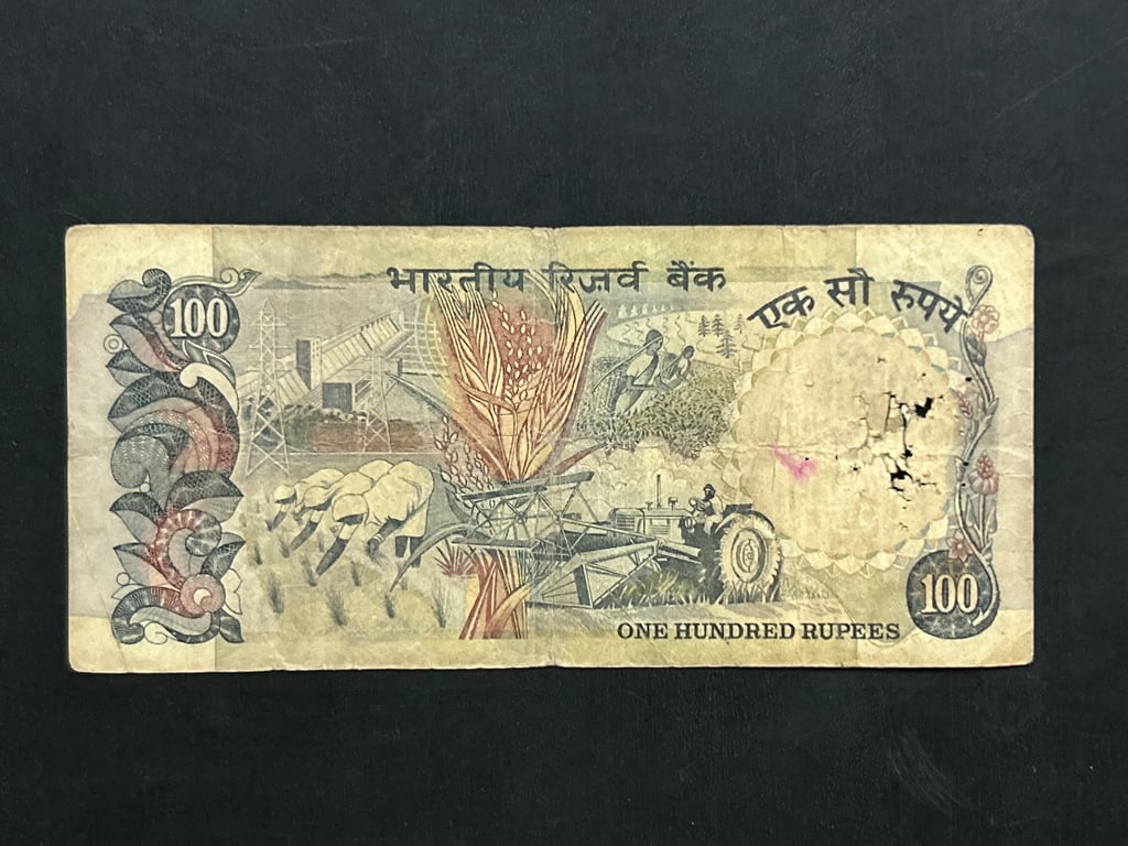 India, Rupees 100 Banknote, Fancy Serial Number 900000, Cobalt Blue Issue, Sign. R.N. Malhotra, Used Condition