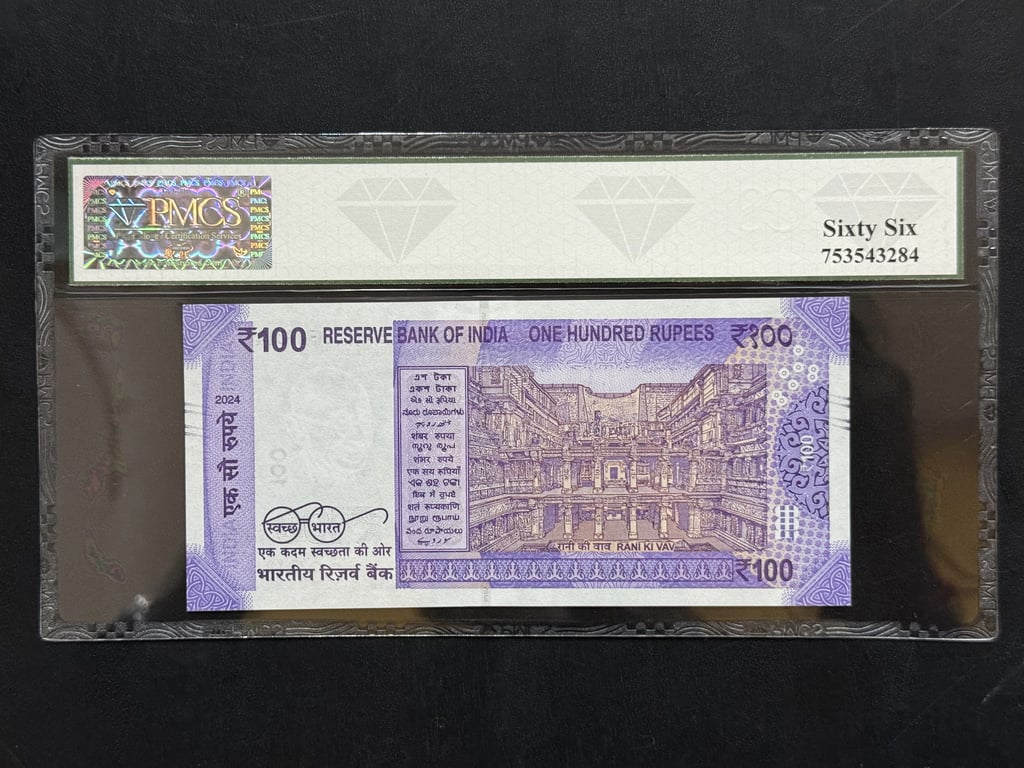 India, Rupees 100 Banknote, Super Solid Fancy Serial Number 3 - 333333, Sign. Shaktikanta Das, PMCS Graded 66 (Gem UNC) Top Graded
