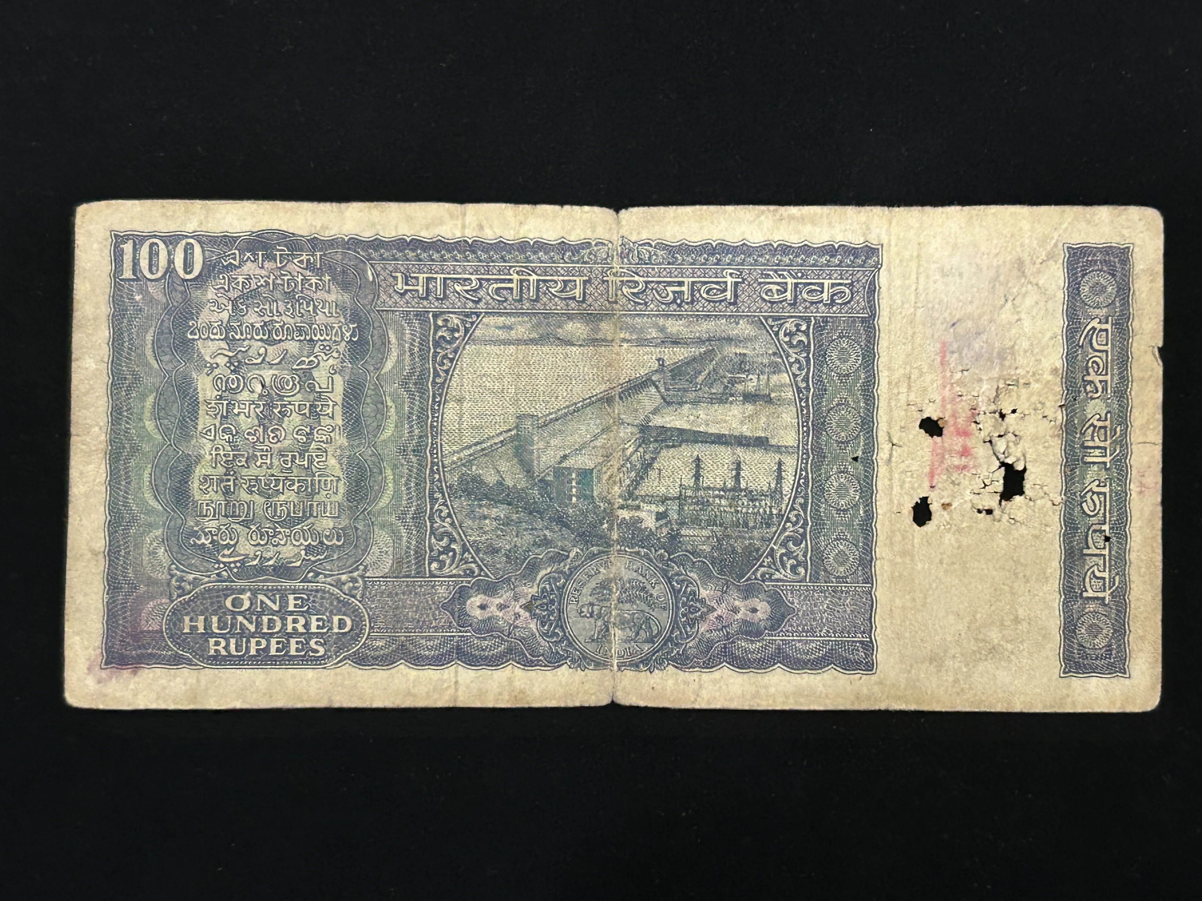 India, Rupees 100 Banknote, White Panel Issue, Sign. I. G. Patel, Inset A, Used Condition, (AA17 023303)