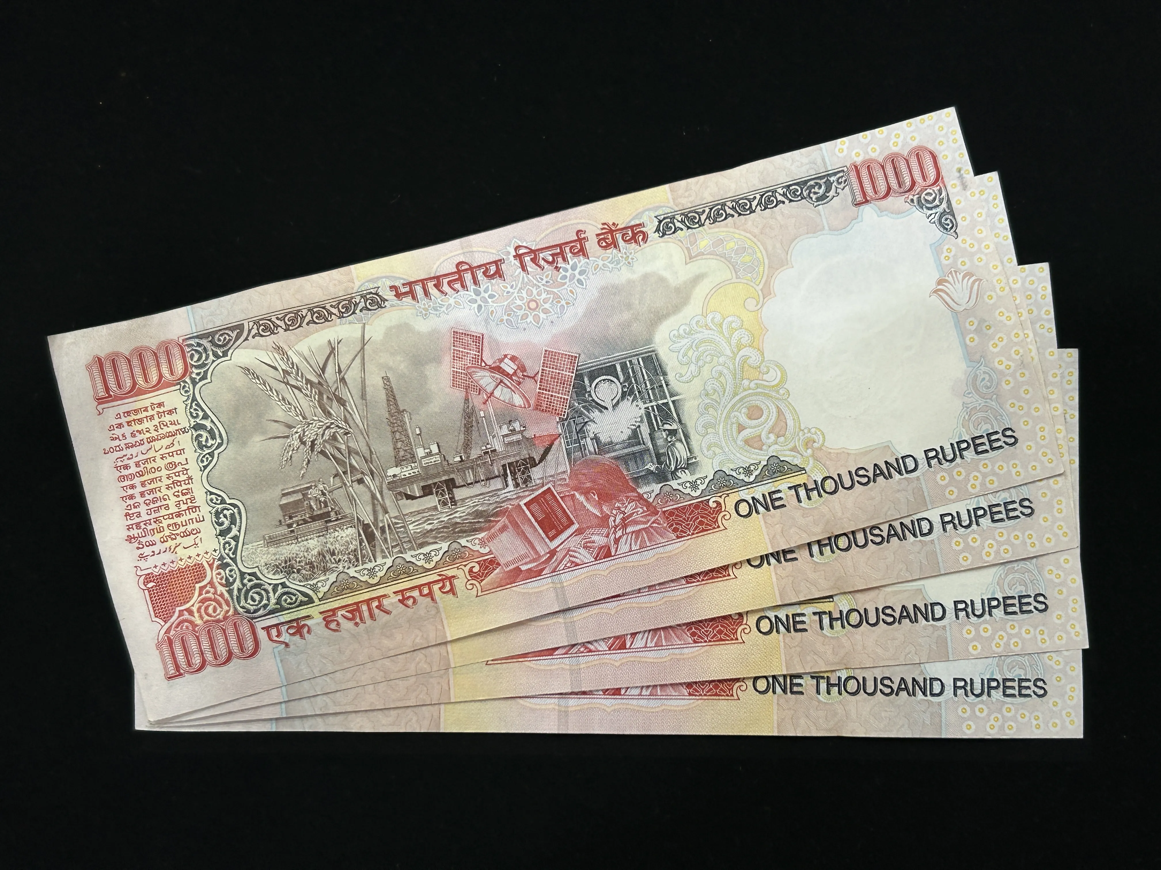 India, Rupees 1000 x 4 Consecutive Serial Number Banknotes, Sign. Bimal Jalan, Inset Plain, (3AW 386085)
