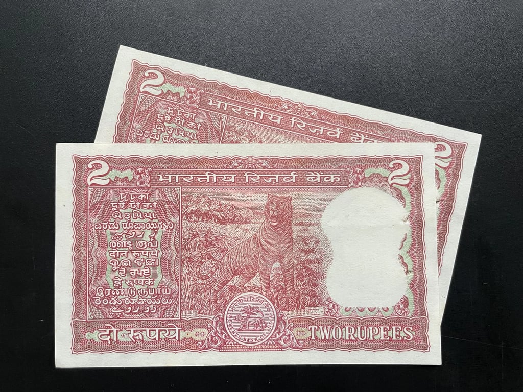India, Rupees 2 Banknote x 2 Consecutive Serial Notes, Standing Tiger Issue, Sign. Amitabh Ghosh